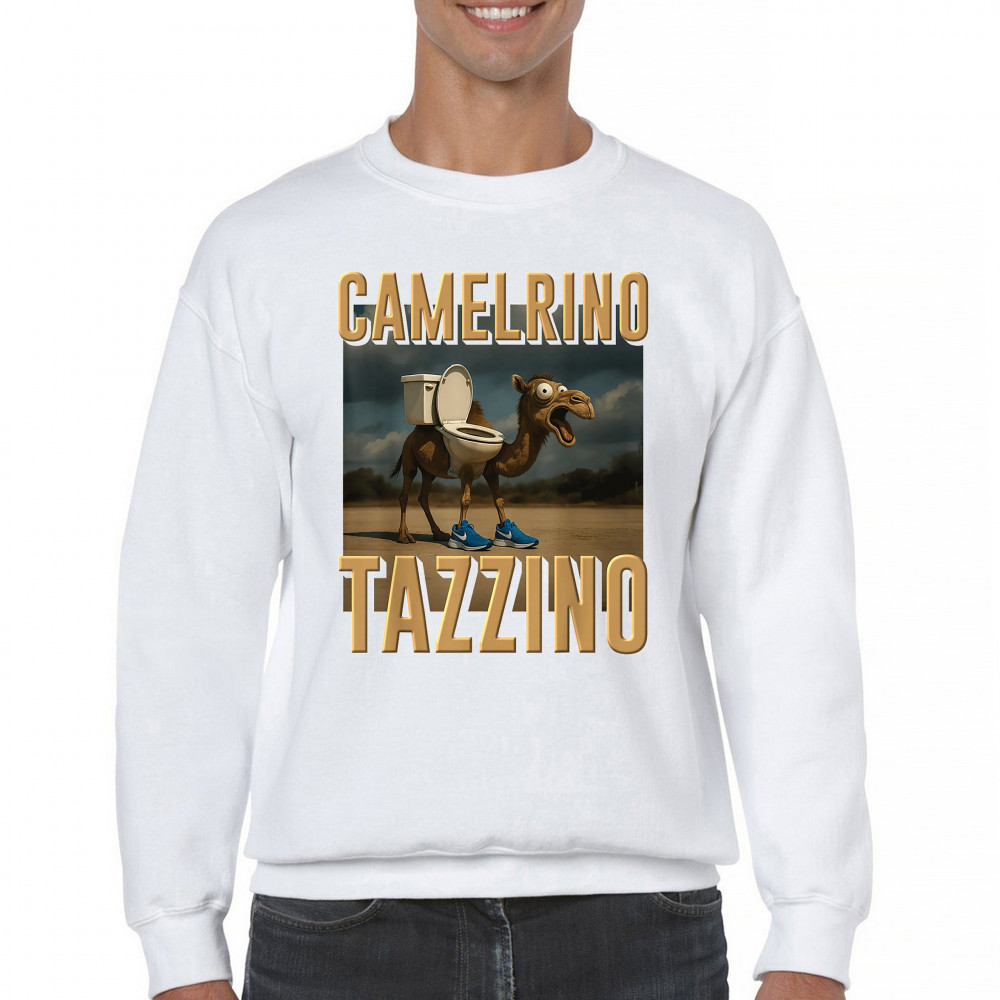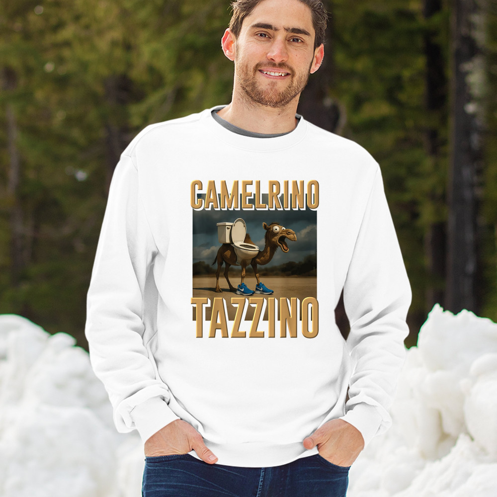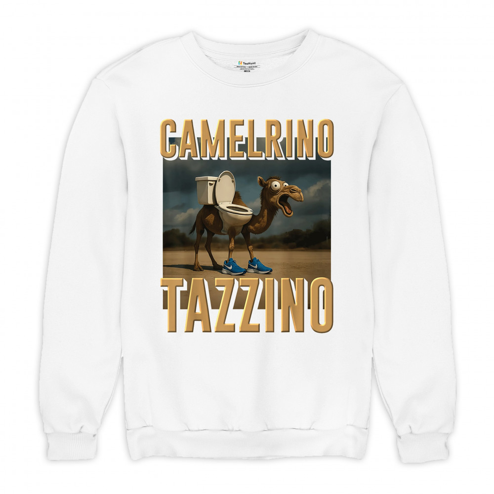 Camelrino Tazzino fuses toilet-core fashion, cursed camel chaos, TikTok meme humor, surreal animal design, and Gen Z absurdity.