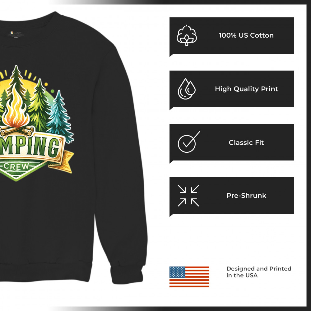 Camping Crew is made for trail lovers, glamping fans, and outdoorsmen who thrive in nature. Celebrate camping adventures, campfire moments, and wilderness vibes with this fun, cozy design. Perfect for family trips, forest escapes, and national park exploration in any season.