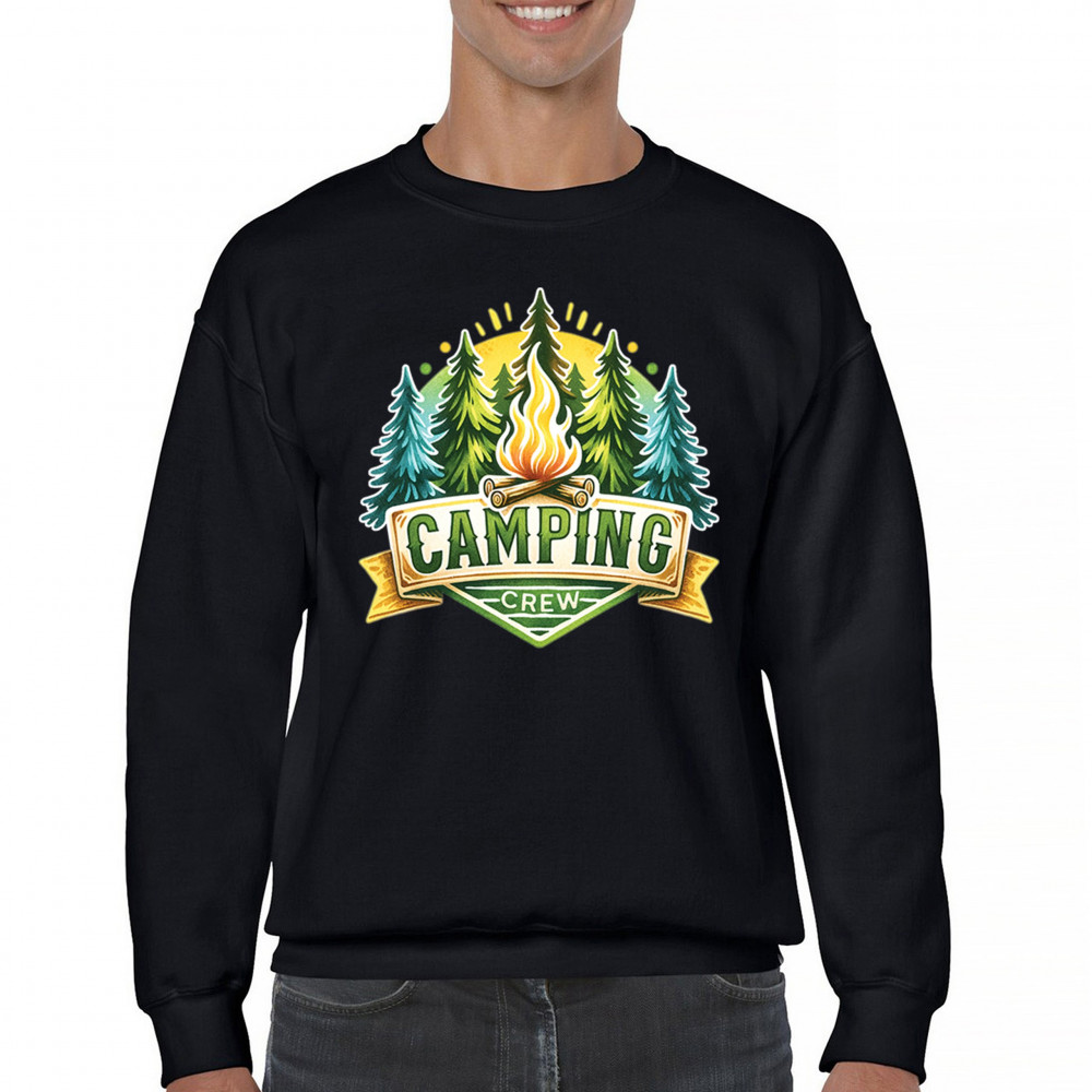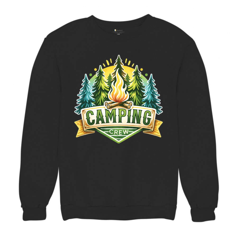 CAMPING CREW crewneck sweatshirt happy camper vibe explore outdoors campfire black
