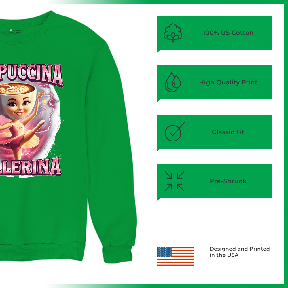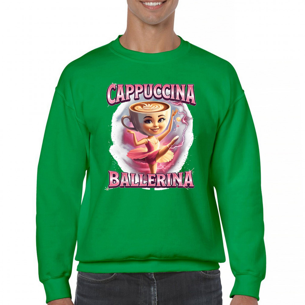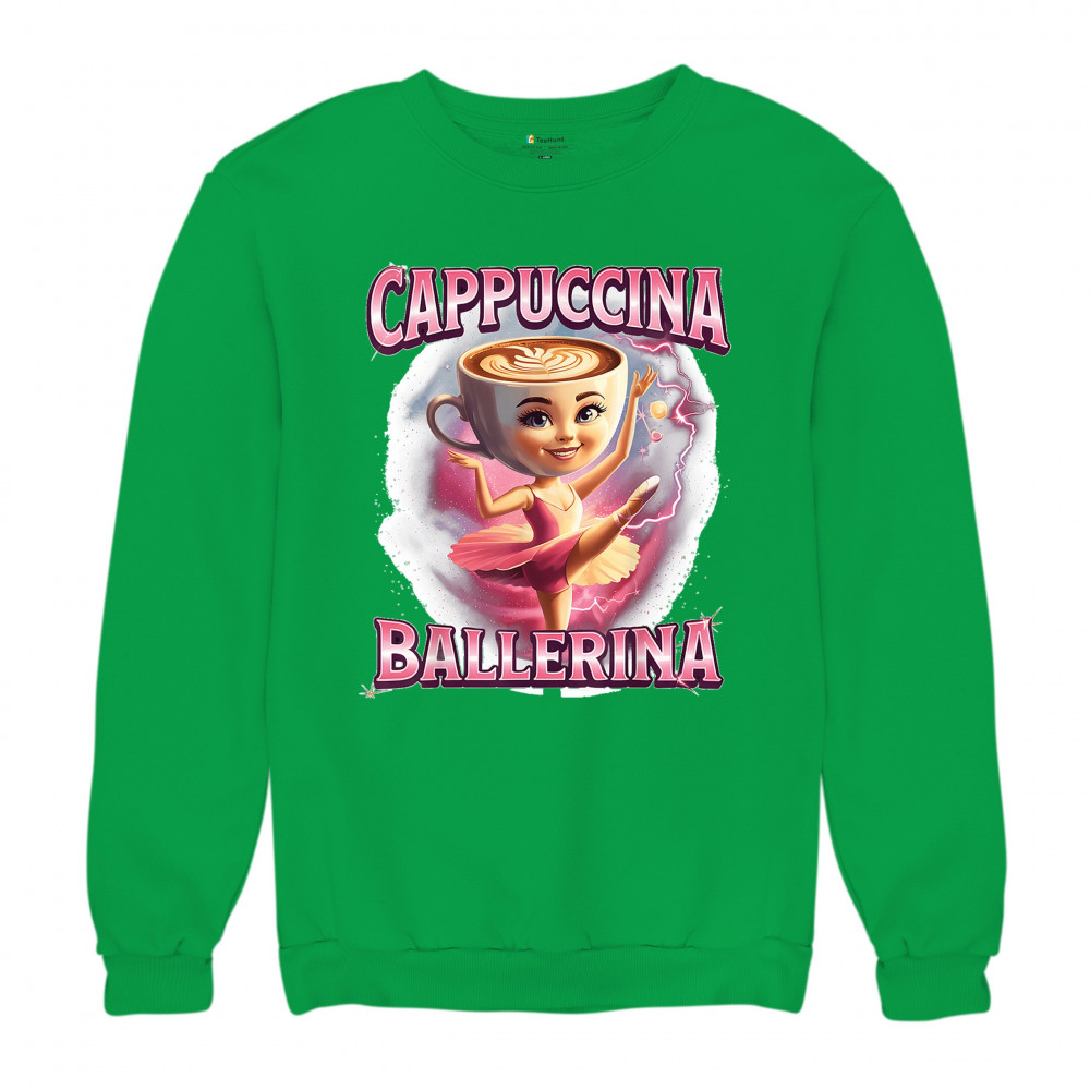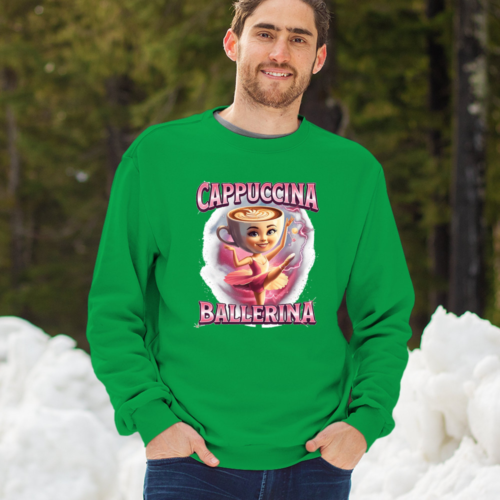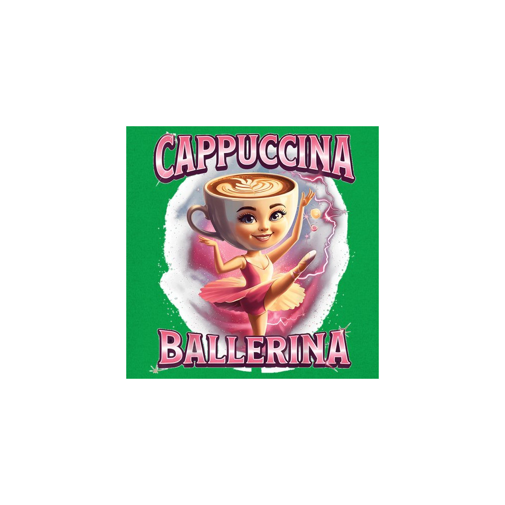 Cappuccina Ballerina is your perfect mix of meme chaos and coffee-core fashion. This absurd design features a ballet-dancing cappuccino head with weirdcore flair and Gen Z humor. A surreal blend of ironic internet fashion, TikTok trends, and espresso madness—ideal for meme lovers, caffeine addicts, and viral absurdists alike.