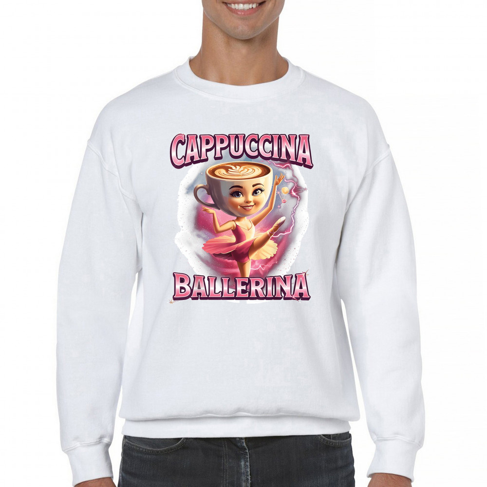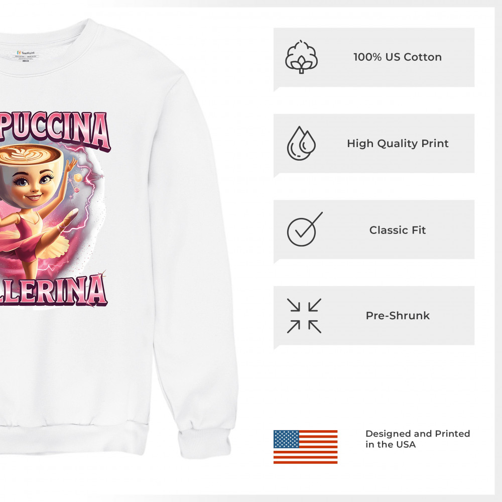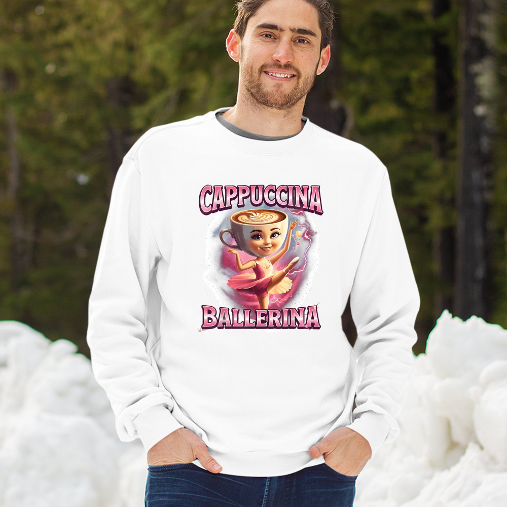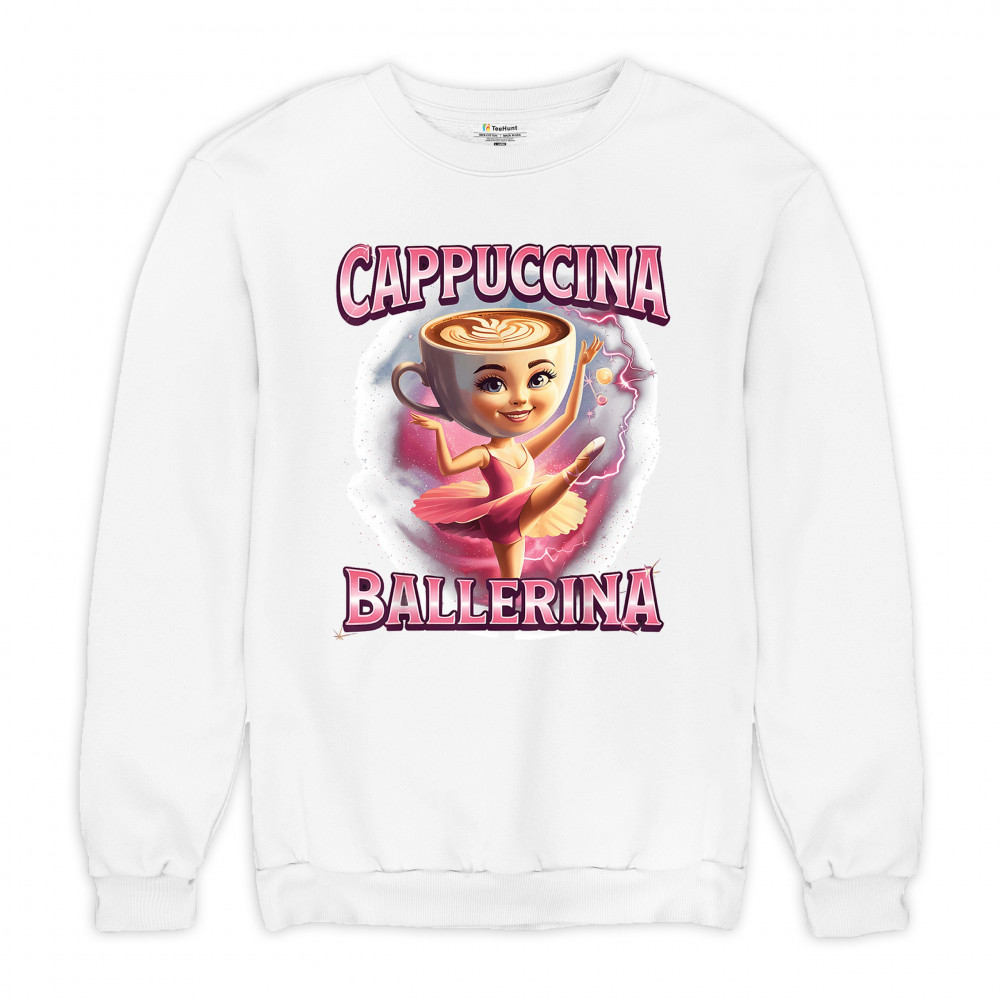 Cappuccina Ballerina is your perfect mix of meme chaos and coffee-core fashion. This absurd design features a ballet-dancing cappuccino head with weirdcore flair and Gen Z humor. A surreal blend of ironic internet fashion, TikTok trends, and espresso madness—ideal for meme lovers, caffeine addicts, and viral absurdists alike.