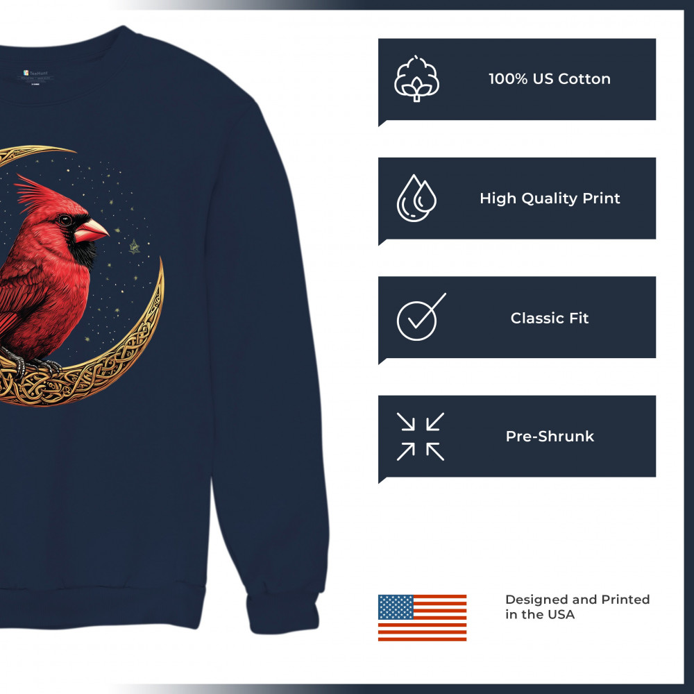 Mystical cardinal with Celtic moon and stars—perfect for nature lovers, spiritual souls, and those honoring love, loss, or remembrance.