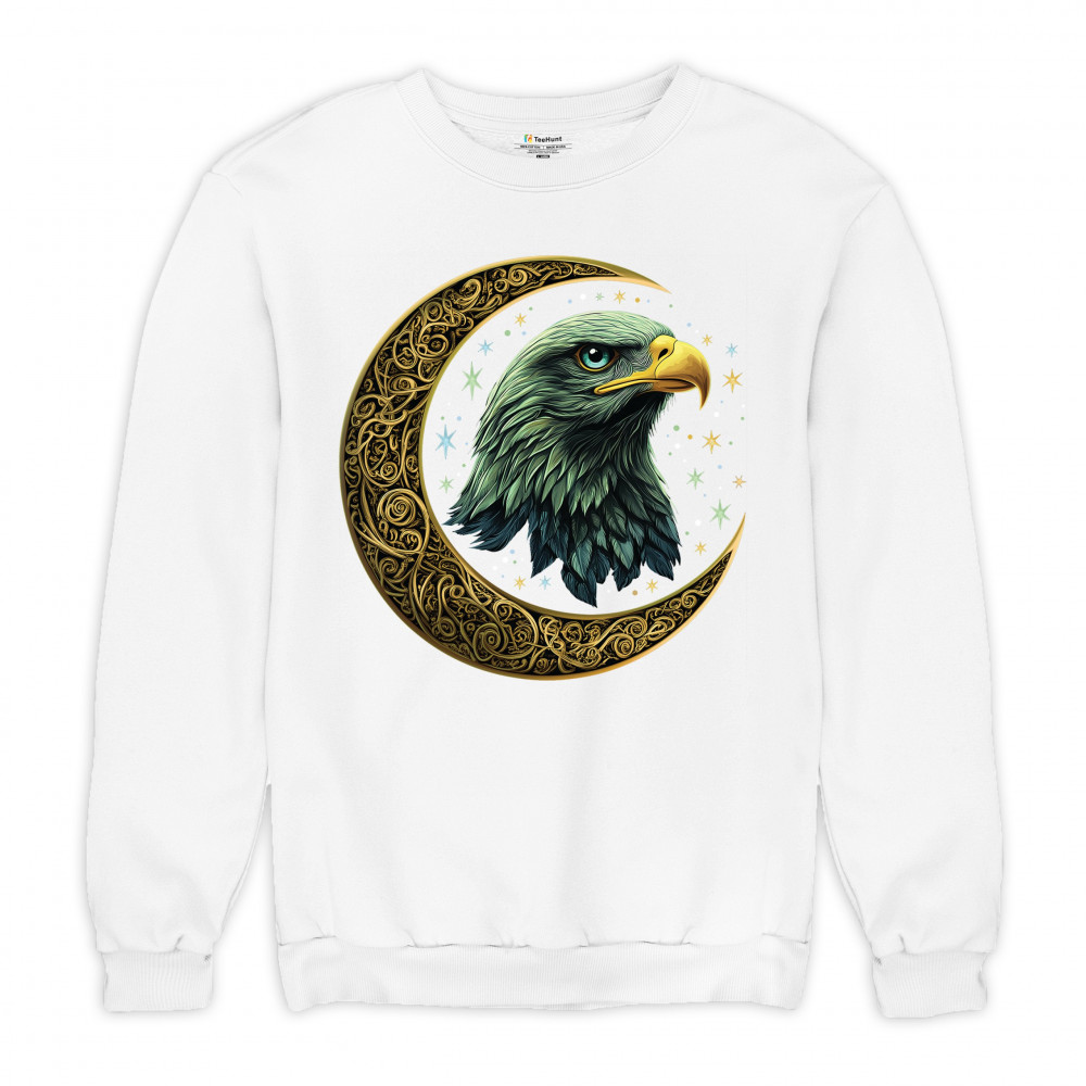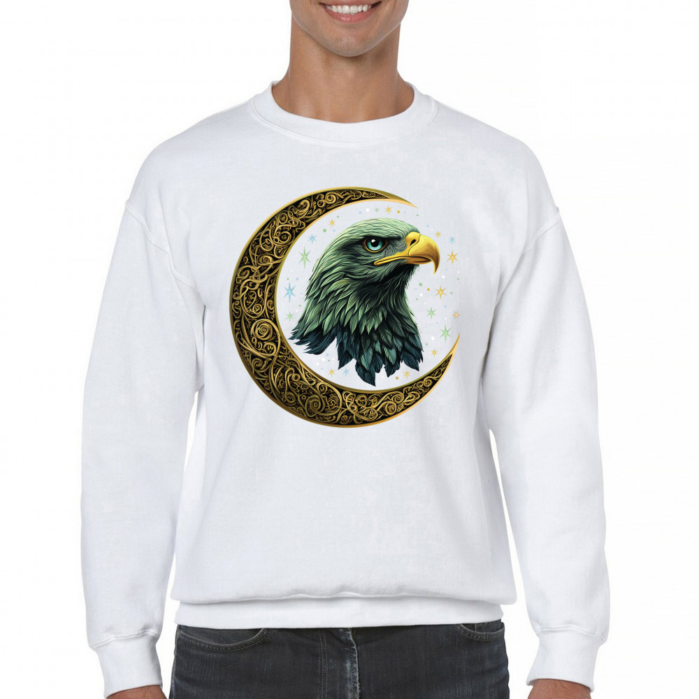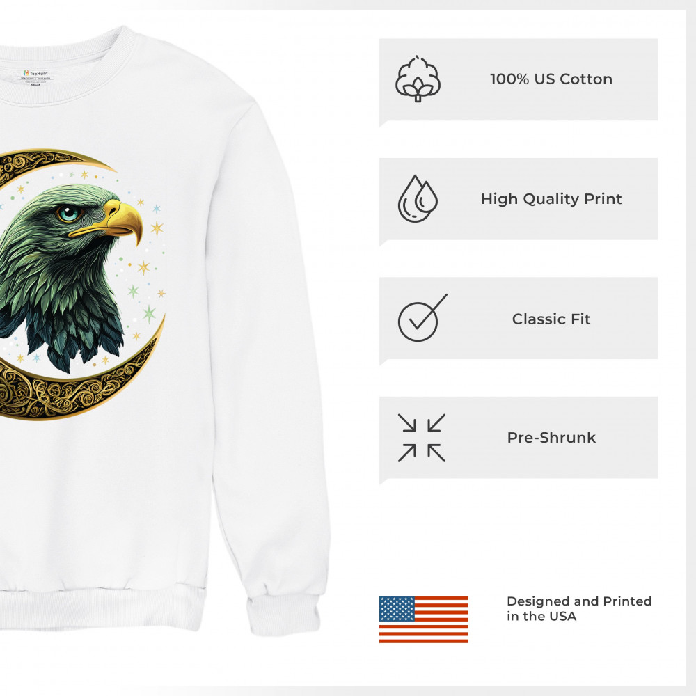 Majestic eagle in golden Celtic moon with stars—symbol of strength, vision, and freedom. Perfect for patriots, spiritual seekers, and nature lovers.