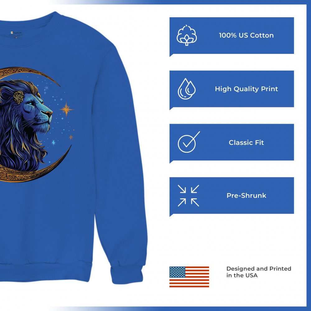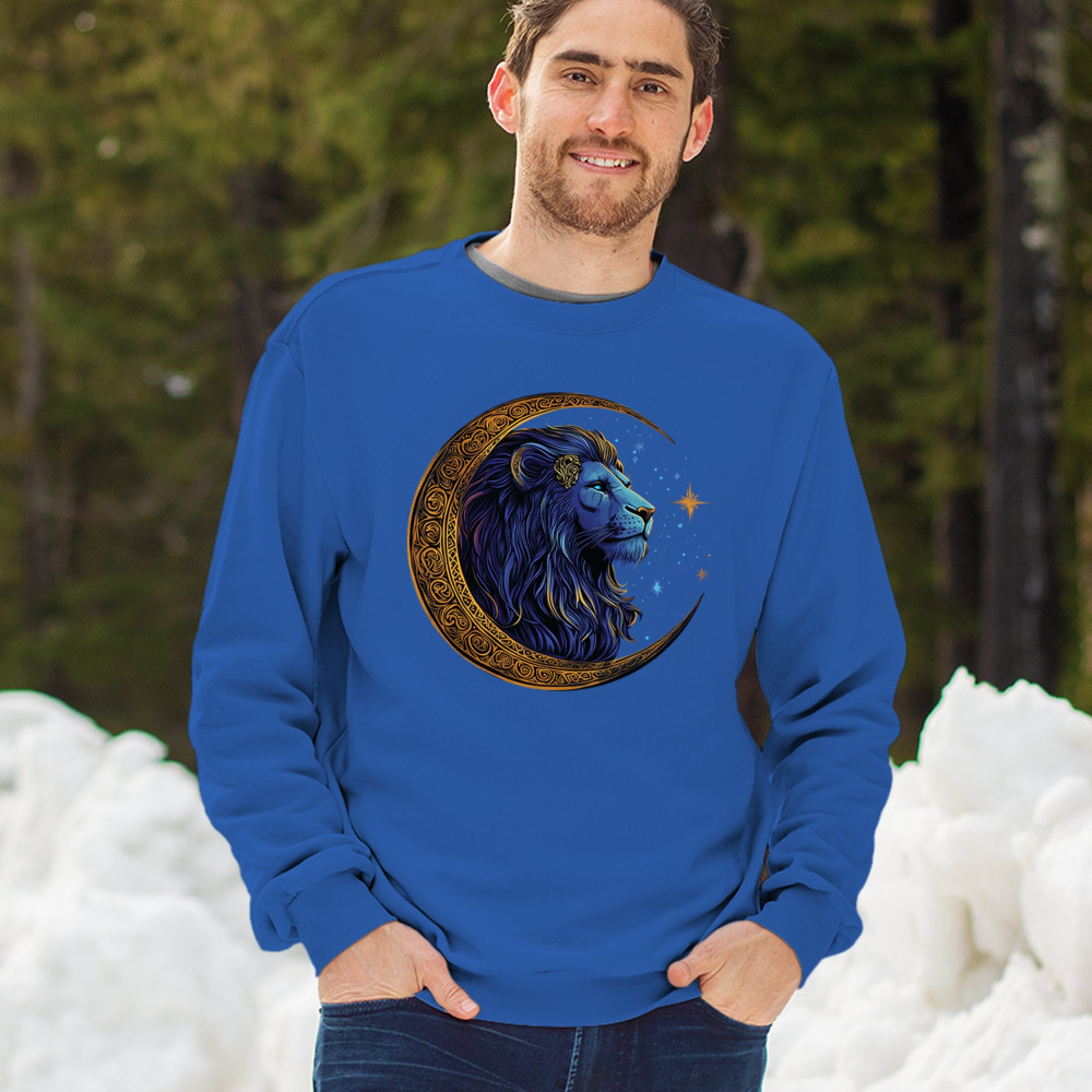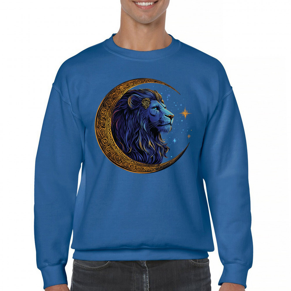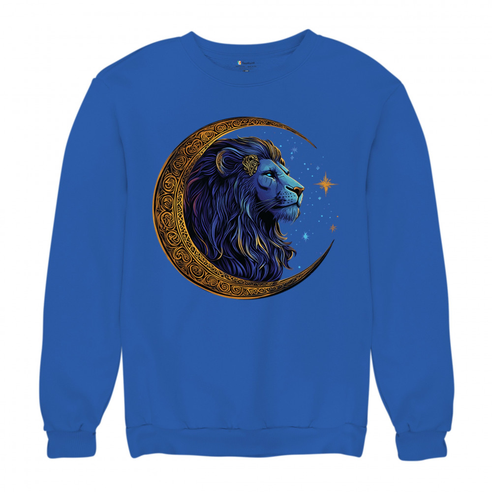 Majestic lion in Celtic crescent moon design—ideal for Leos, fantasy fans, and spiritual seekers drawn to strength and celestial symbolism.