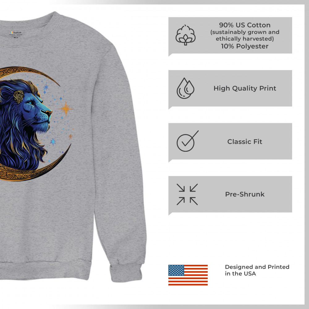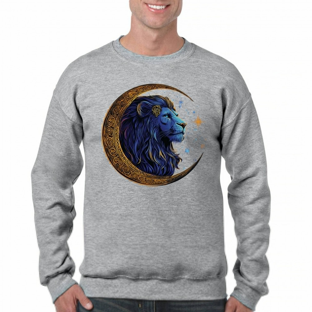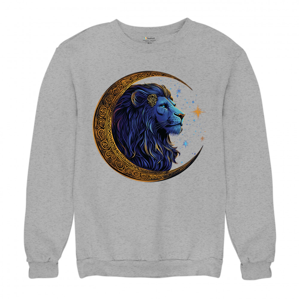 Majestic lion in Celtic crescent moon design—ideal for Leos, fantasy fans, and spiritual seekers drawn to strength and celestial symbolism.