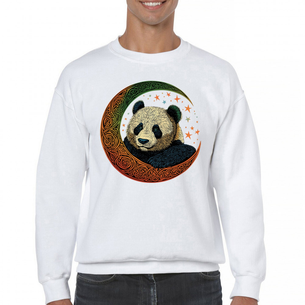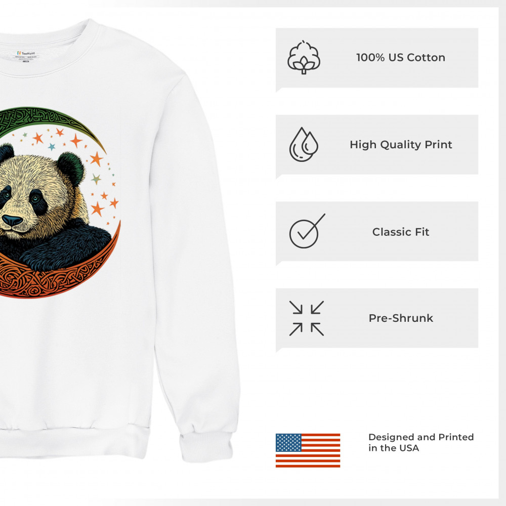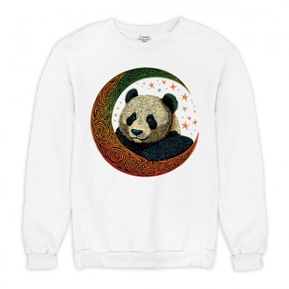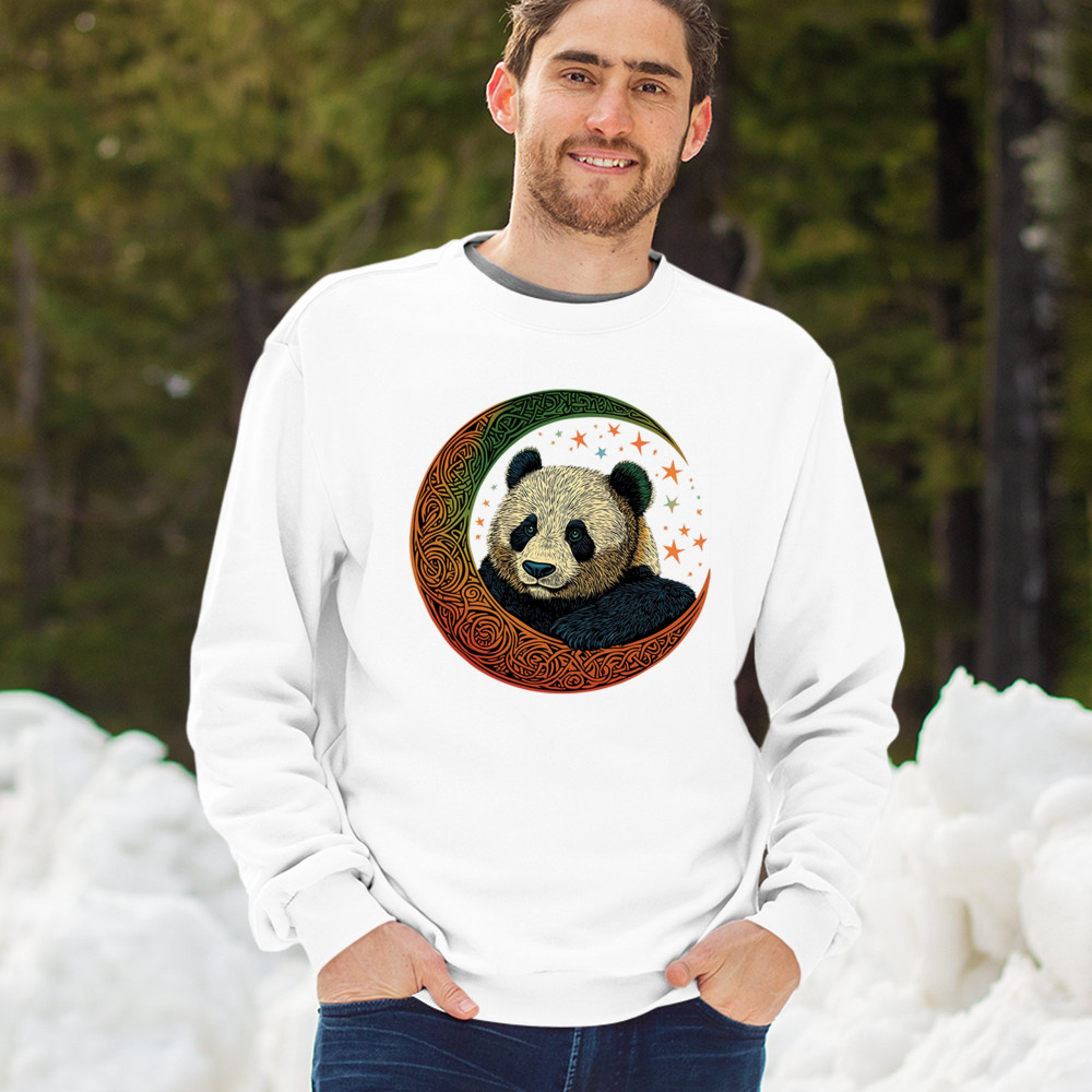 Peaceful panda in Celtic crescent moon design—symbol of harmony, balance, and spiritual calm for nature lovers, mystics, and gentle souls.