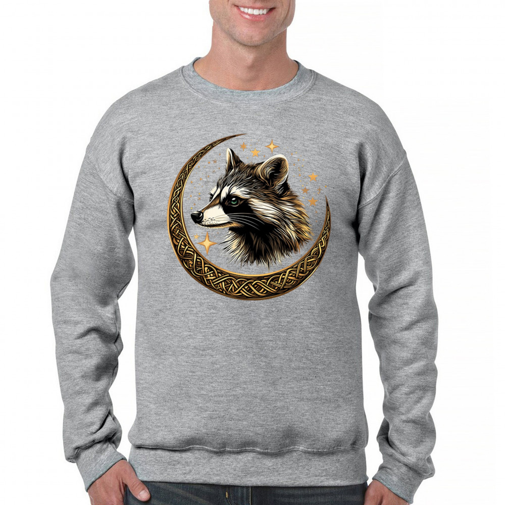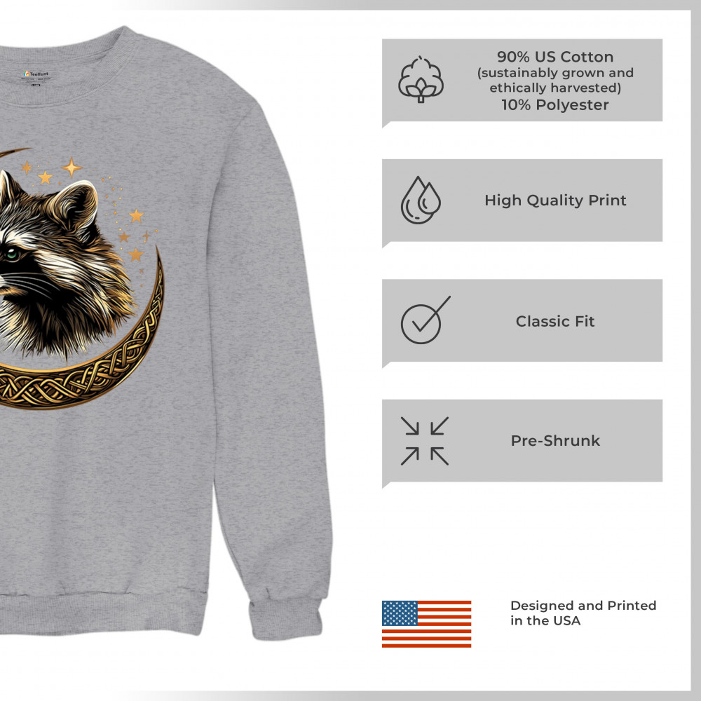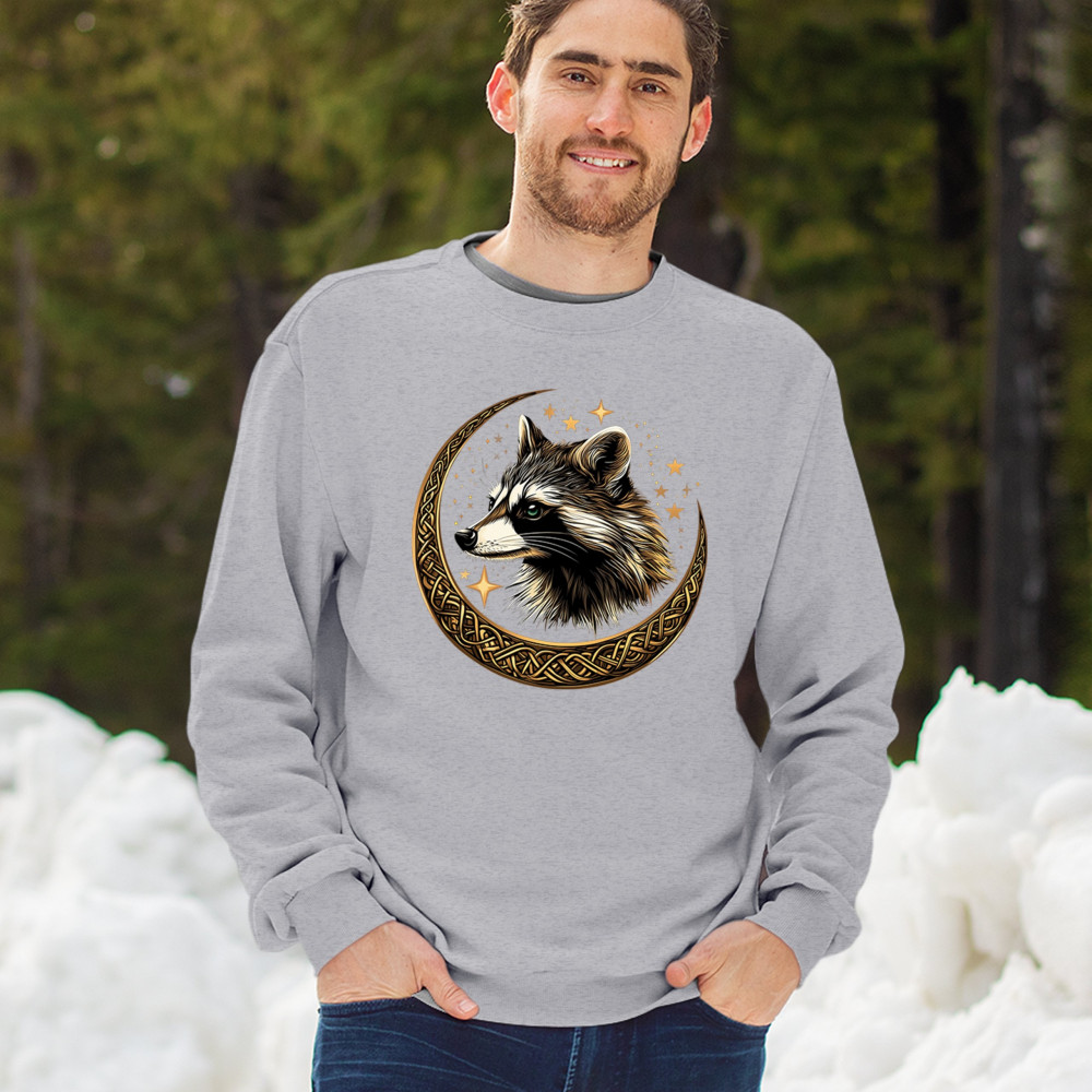 Cosmic raccoon design in Celtic moon. Symbol of adaptability, mystery, and spiritual intelligence. A perfect gift for wild and curious souls.