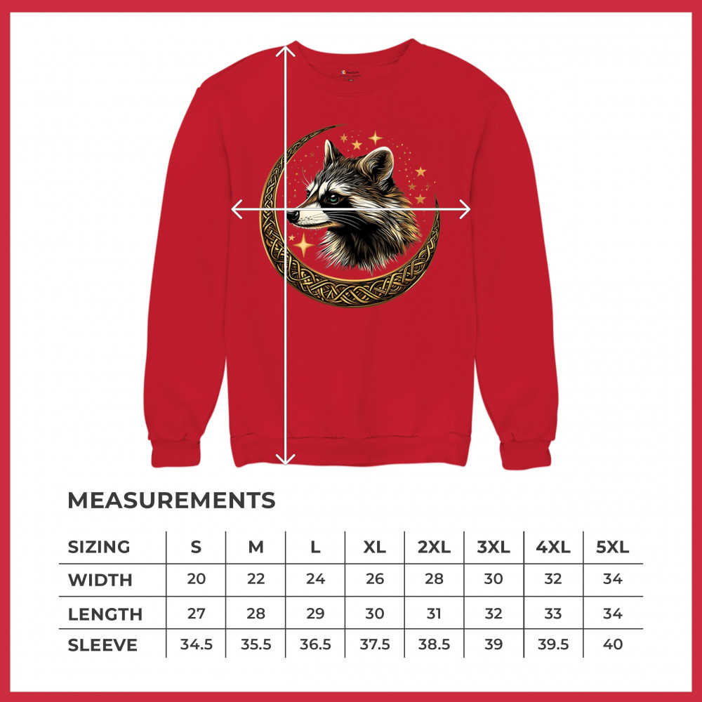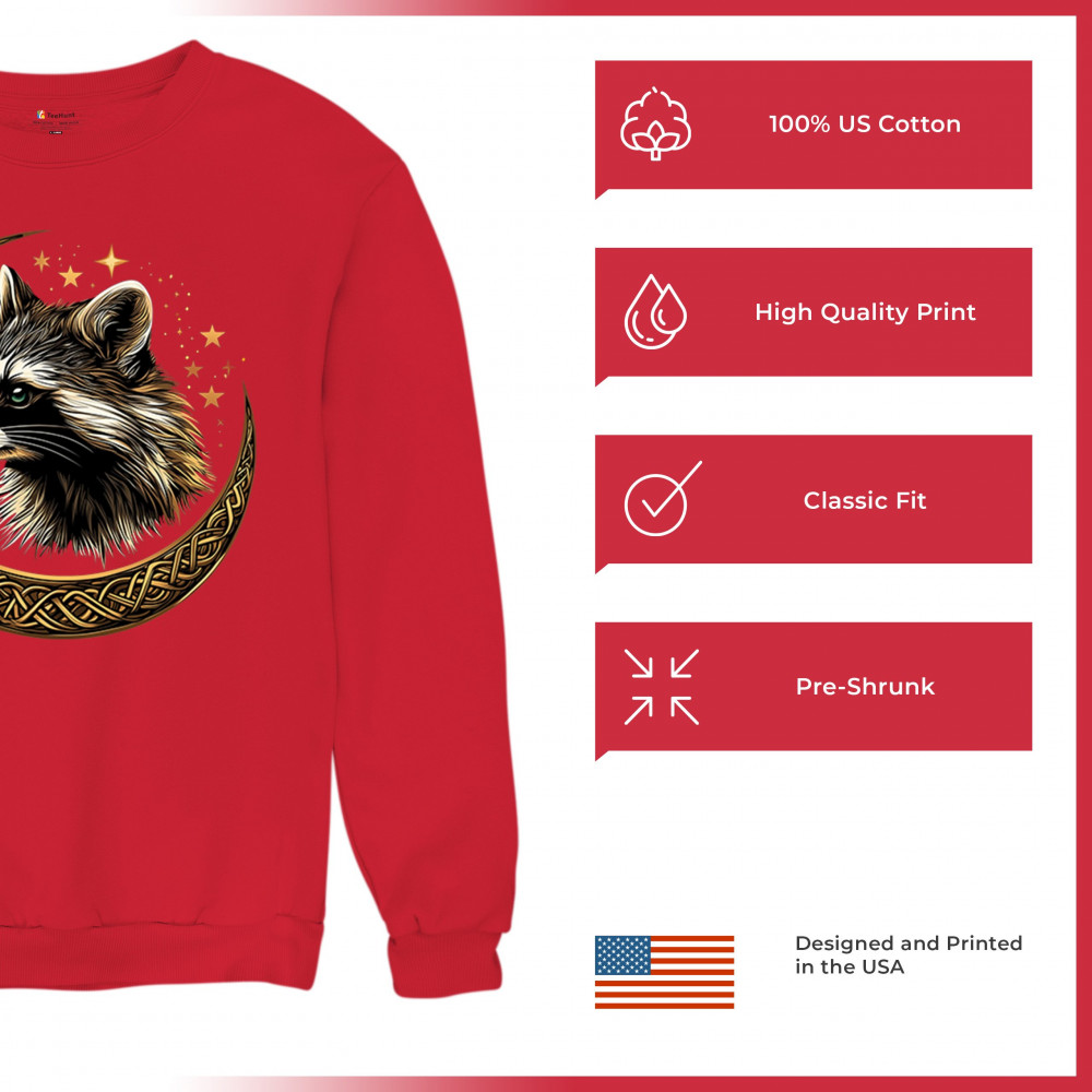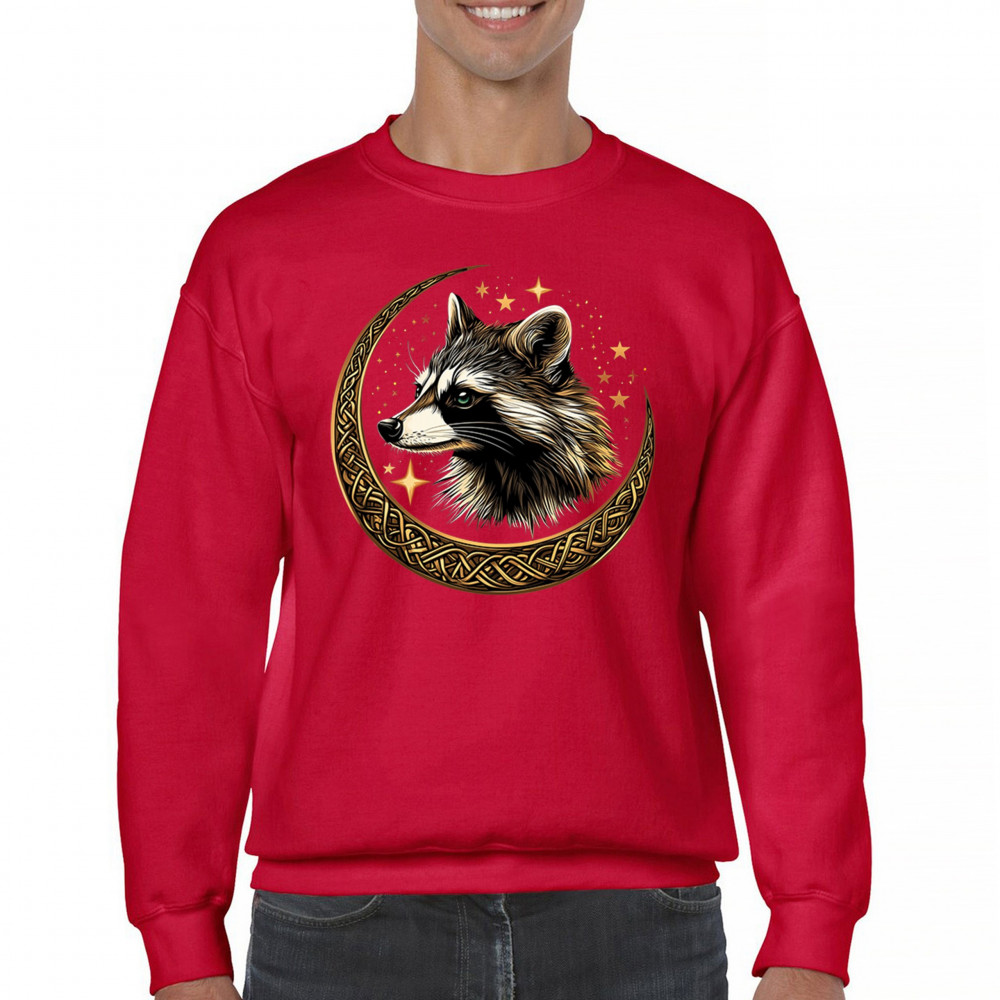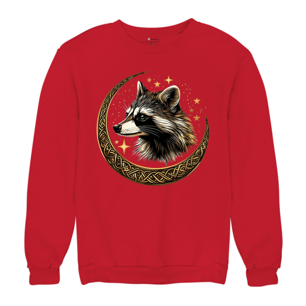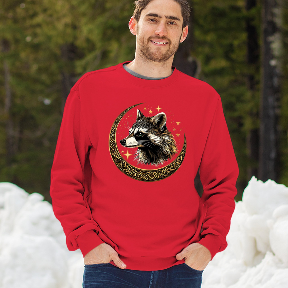 Cosmic raccoon design in Celtic moon. Symbol of adaptability, mystery, and spiritual intelligence. A perfect gift for wild and curious souls.