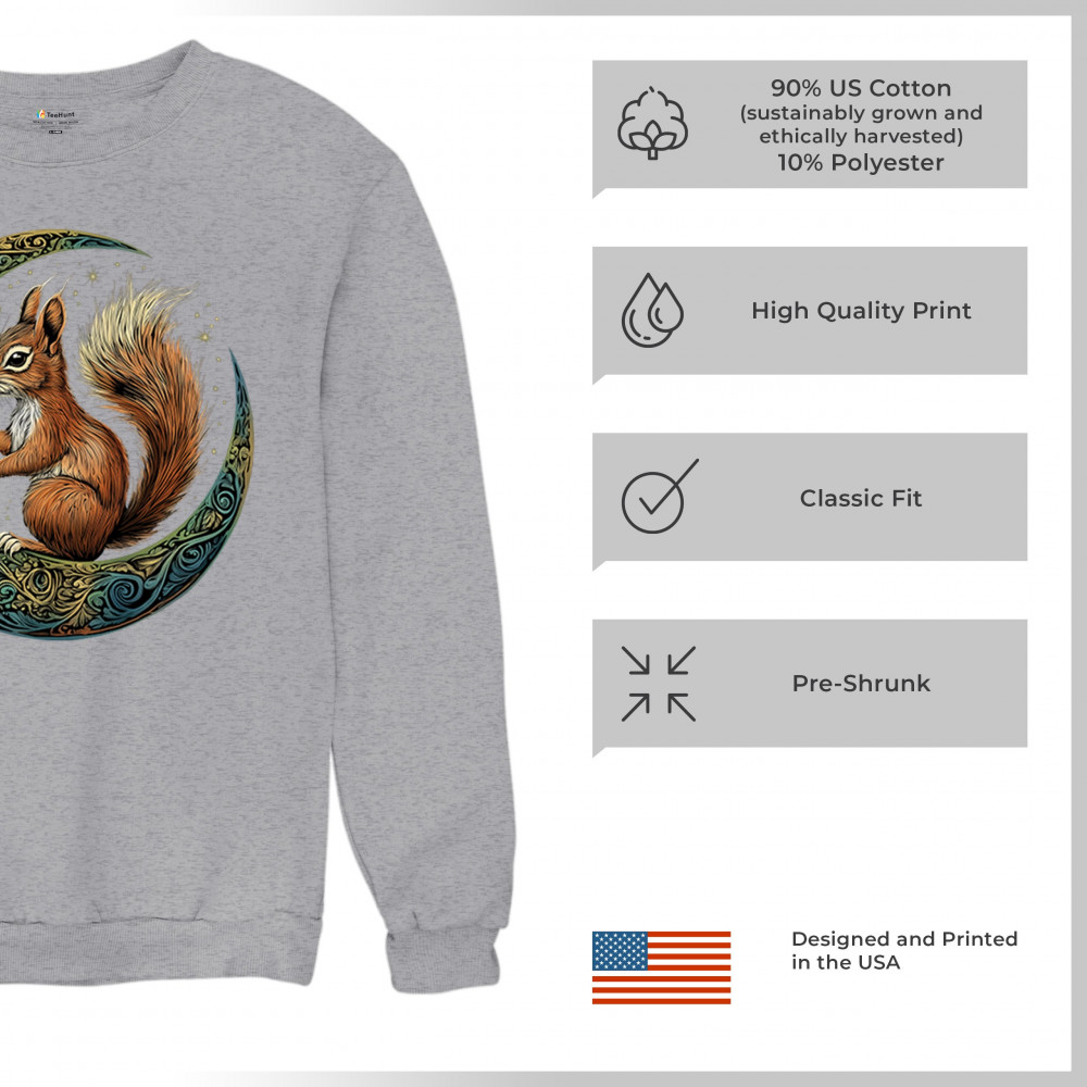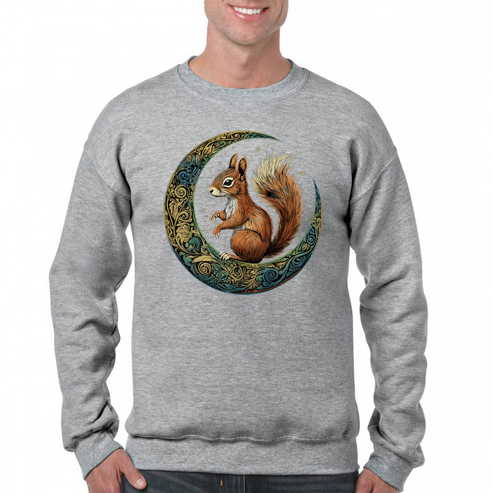CELTIC MOON SQUIRREL sweatshirt mystical critter spiritual wildlife crewneck gray