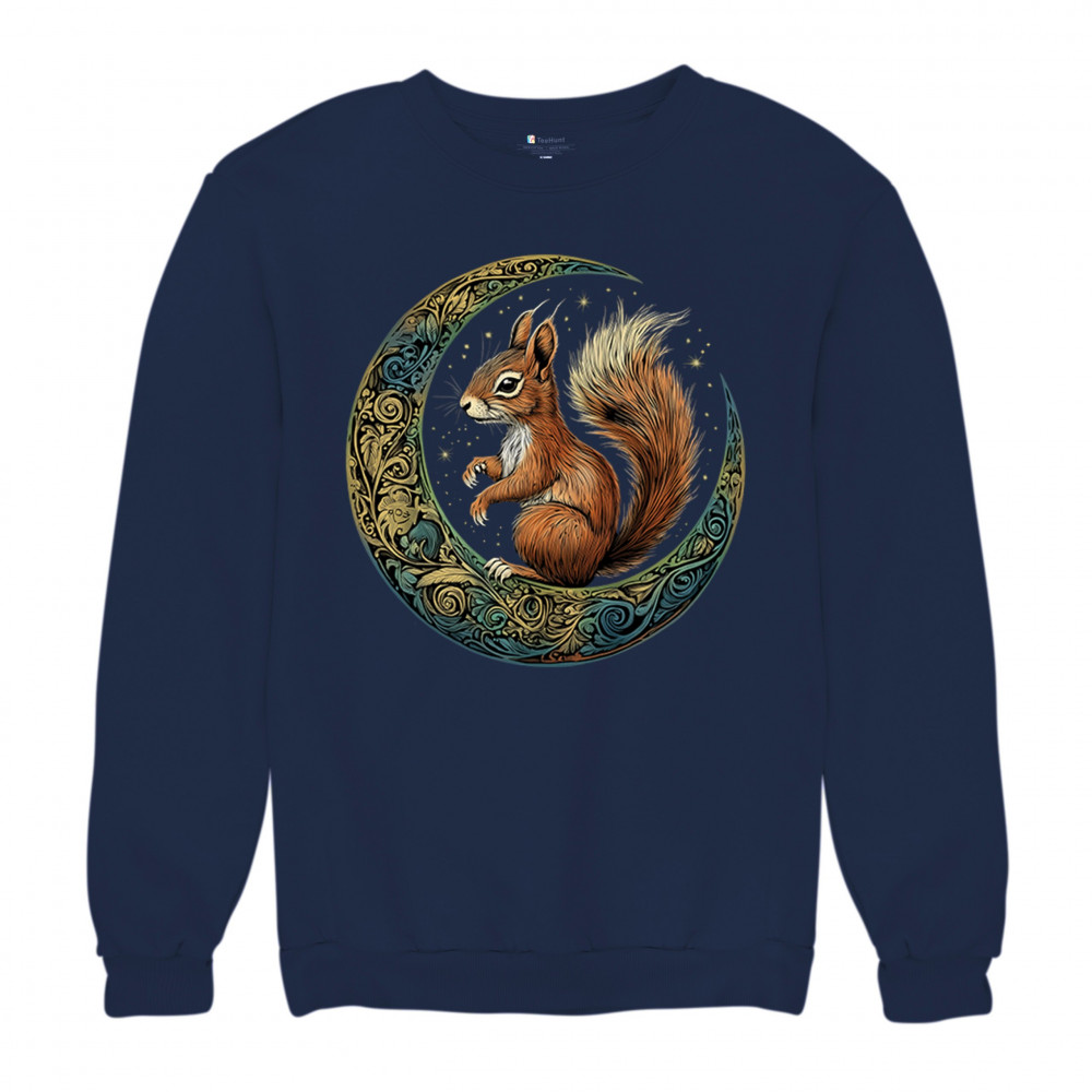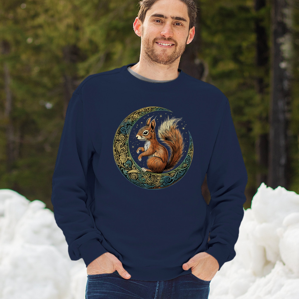 Celebrate agility, awareness, and forest wisdom with this magical red squirrel design. Nestled in a green-gold Celtic crescent moon and backed by a starry cosmic sky, this piece merges natural energy with tribal patterns and celestial wonder. A unique design for animal spirit believers, forest wanderers, and fantasy nature fans.