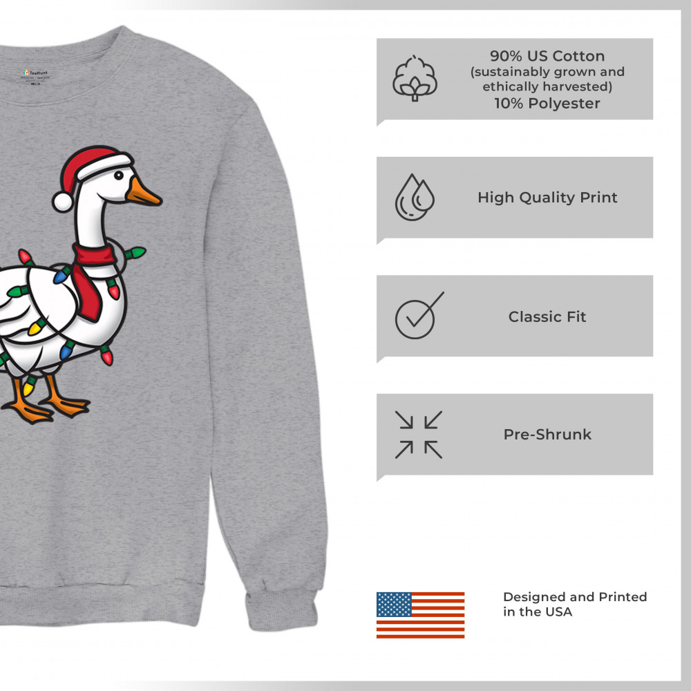 CHRISTMAS GOOSE crewneck sweatshirt jolly xmas lights secret santa gift idea gray