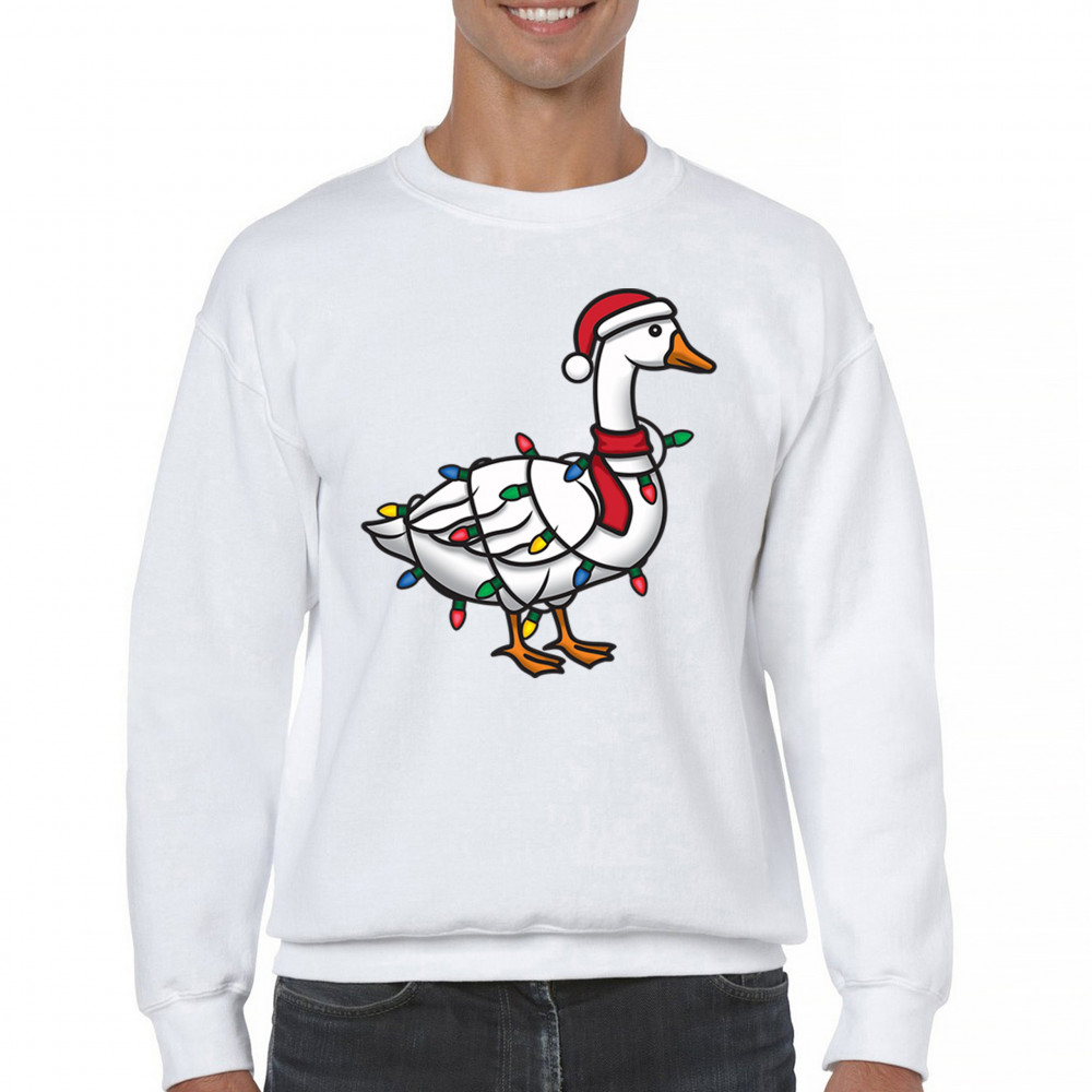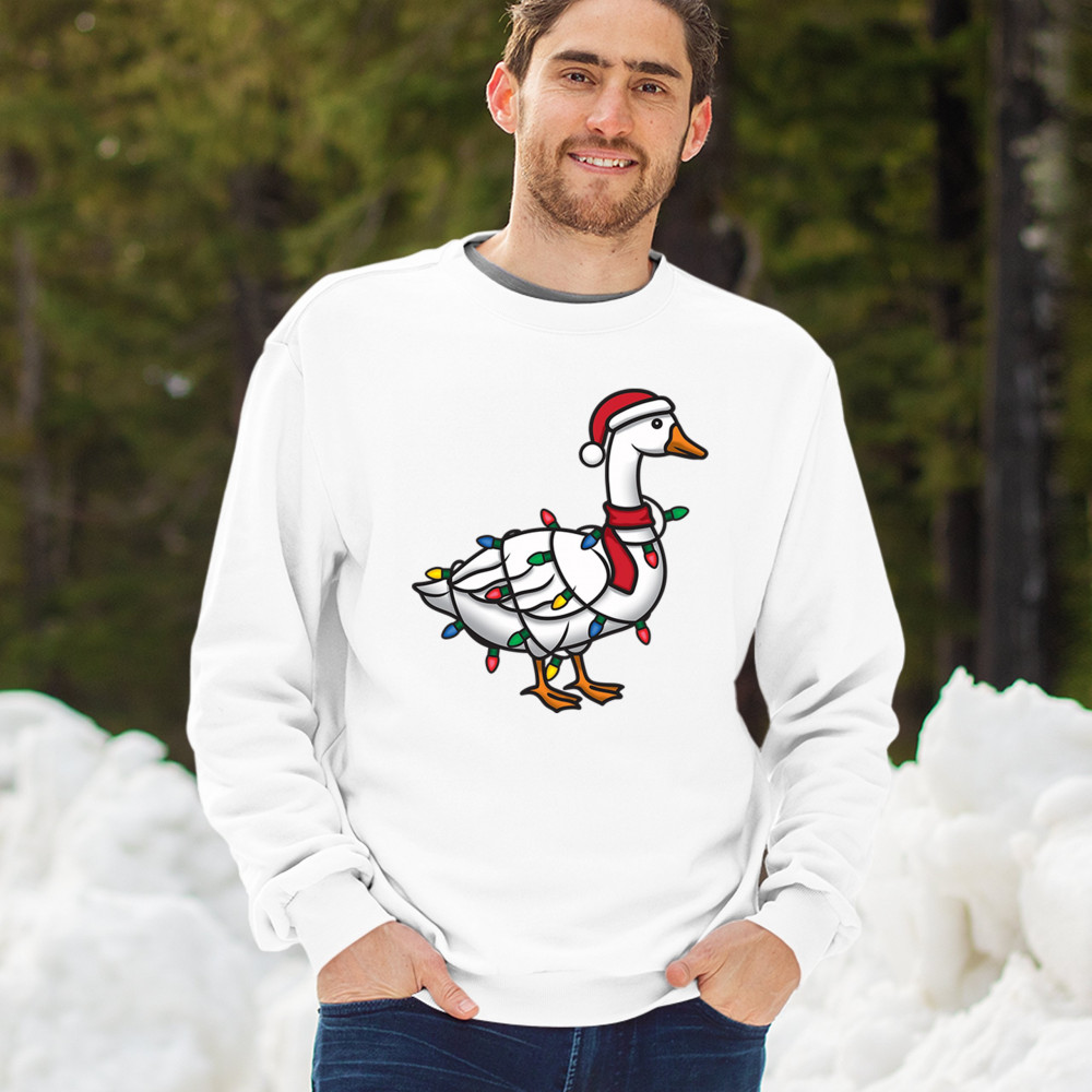 Funny Christmas goose wrapped in lights with festive humor, perfect for holiday gifting, white elephant exchanges, and cheerful seasonal style.