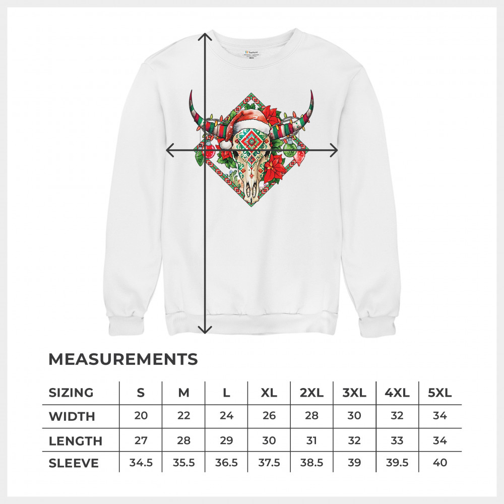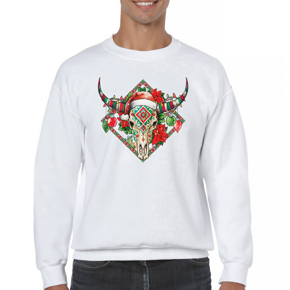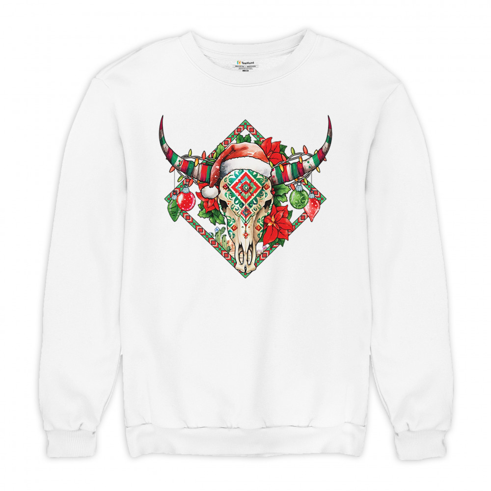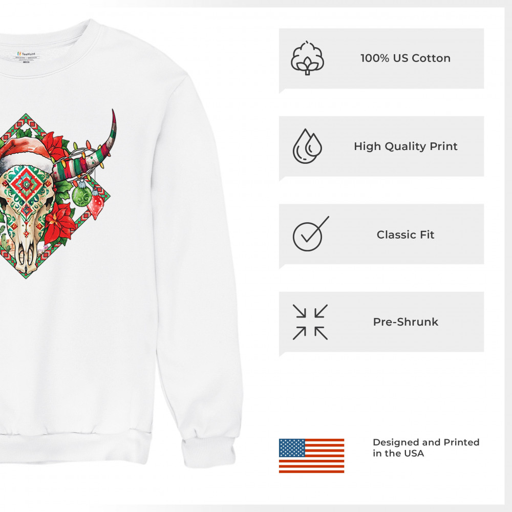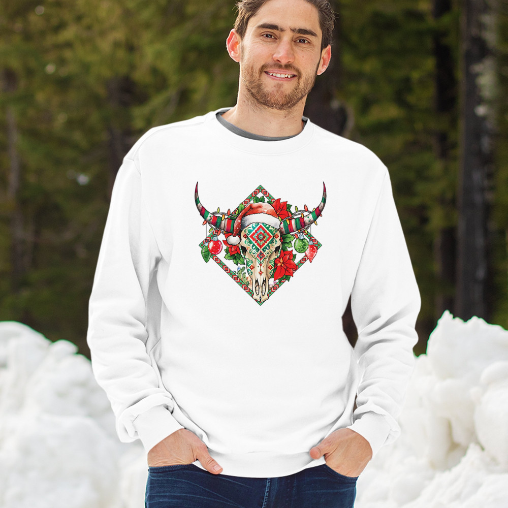 Blend Southwestern charm with holiday cheer! This vibrant skull design with poinsettias and ornaments is perfect for festive parties and unique gifts!