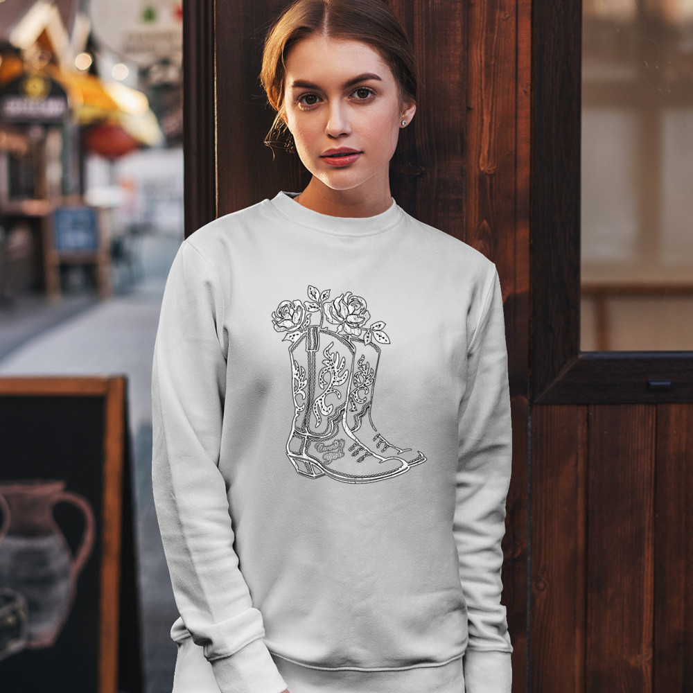 Embrace your southern roots with this rustic “Country Girl†design featuring embroidered western boots filled with roses. This floral cowboy boot graphic blends cowgirl pride, vintage charm, and sketch-style art—perfect for rodeos, concerts, barn dances, or sunny fairground strolls.