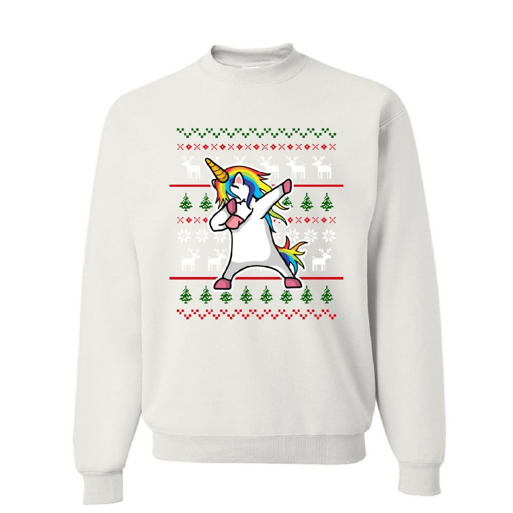 DABBING UNICORN ugly sweater sweatshirt christmas xmas dab rudolph sweater white