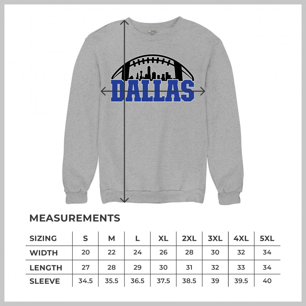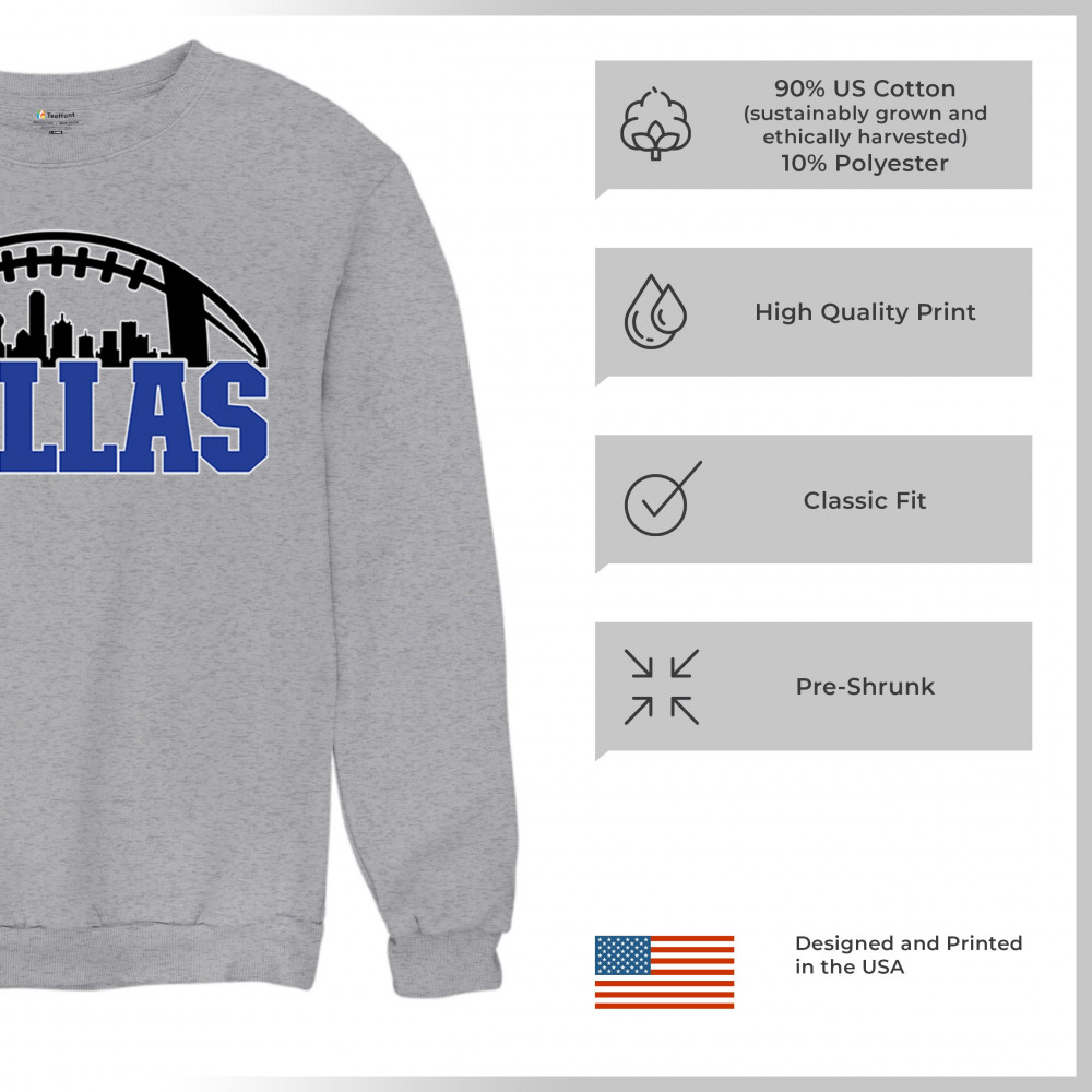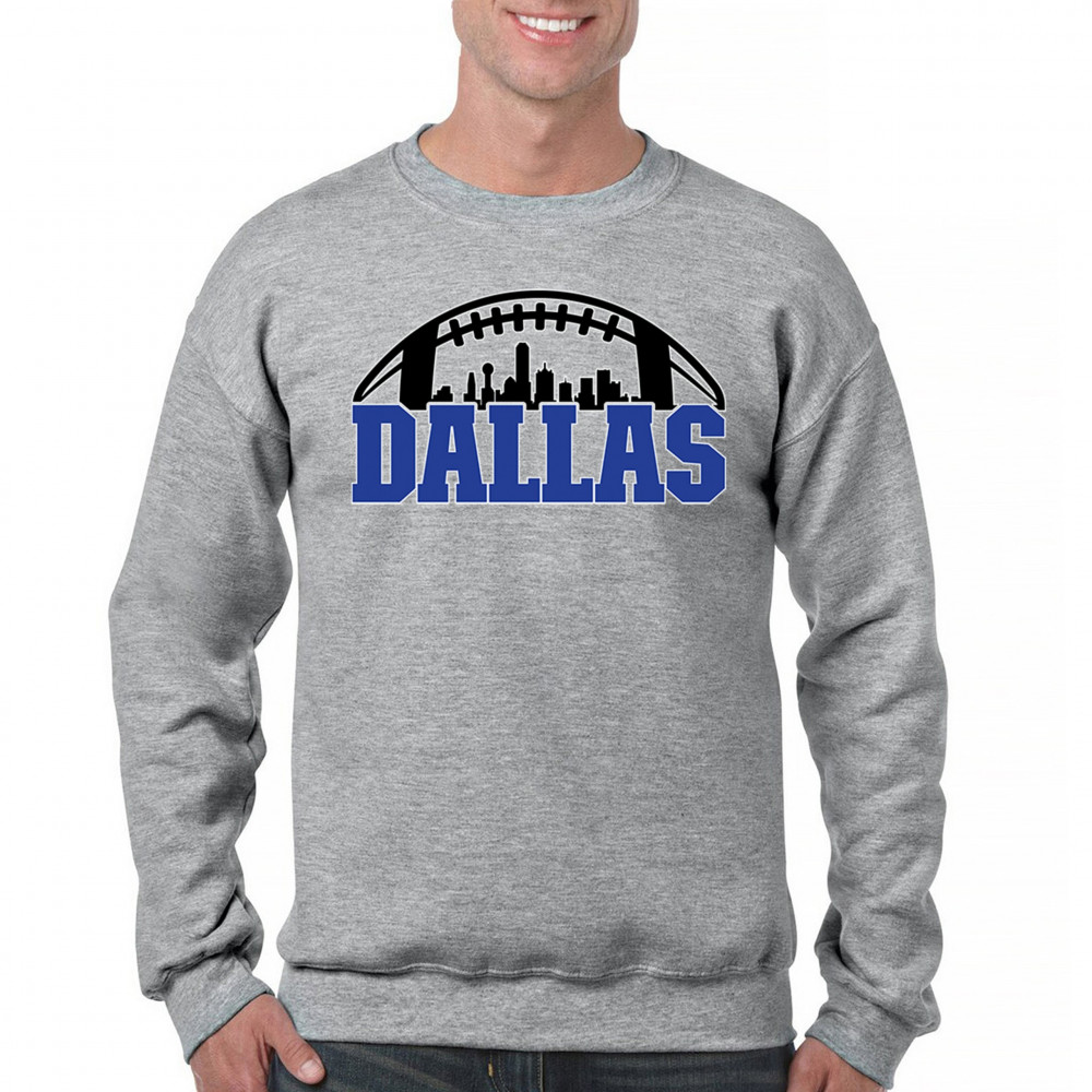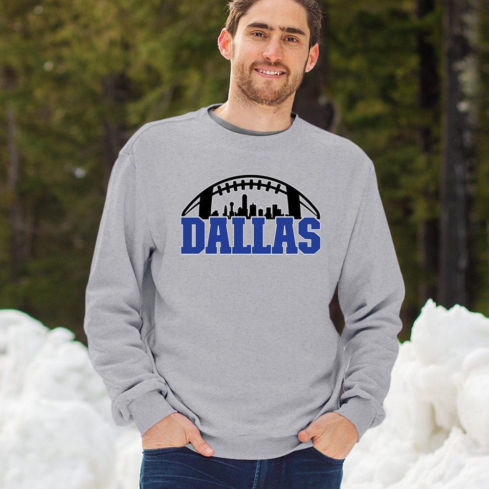 Show off your Dallas pride with a bold football-themed design featuring the city's skyline. Perfect for game days, tailgates, and passionate fans.