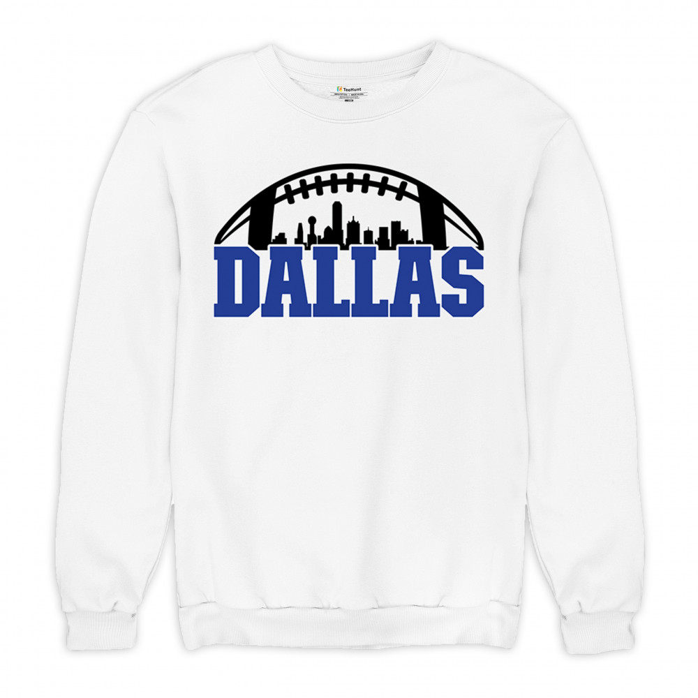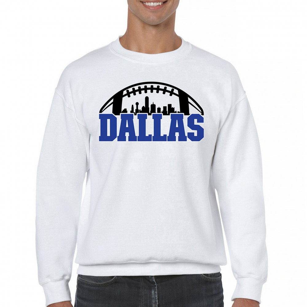 Show off your Dallas pride with a bold football-themed design featuring the city's skyline. Perfect for game days, tailgates, and passionate fans.