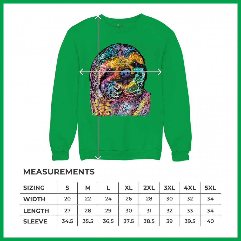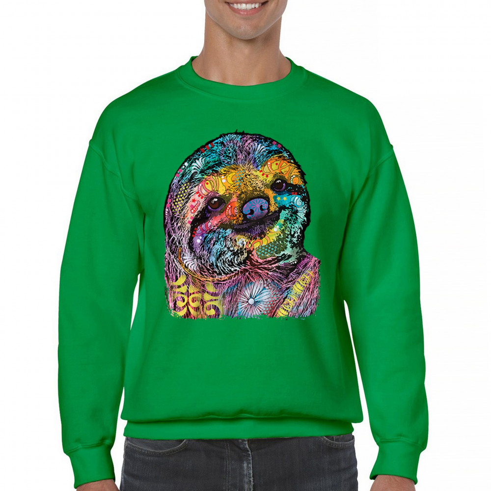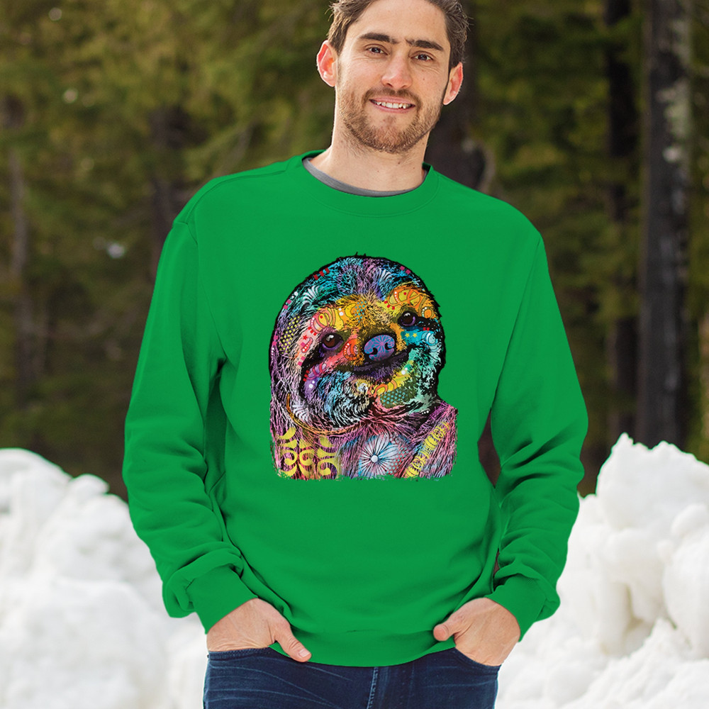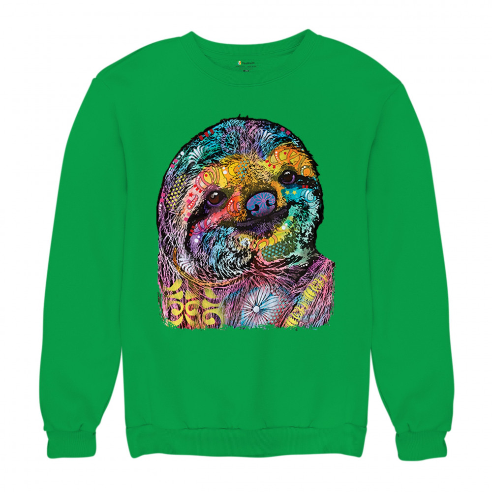 DEAN RUSSO CUTE LAZY SLOTH sweatshirt funny wild life colorful crewneck green