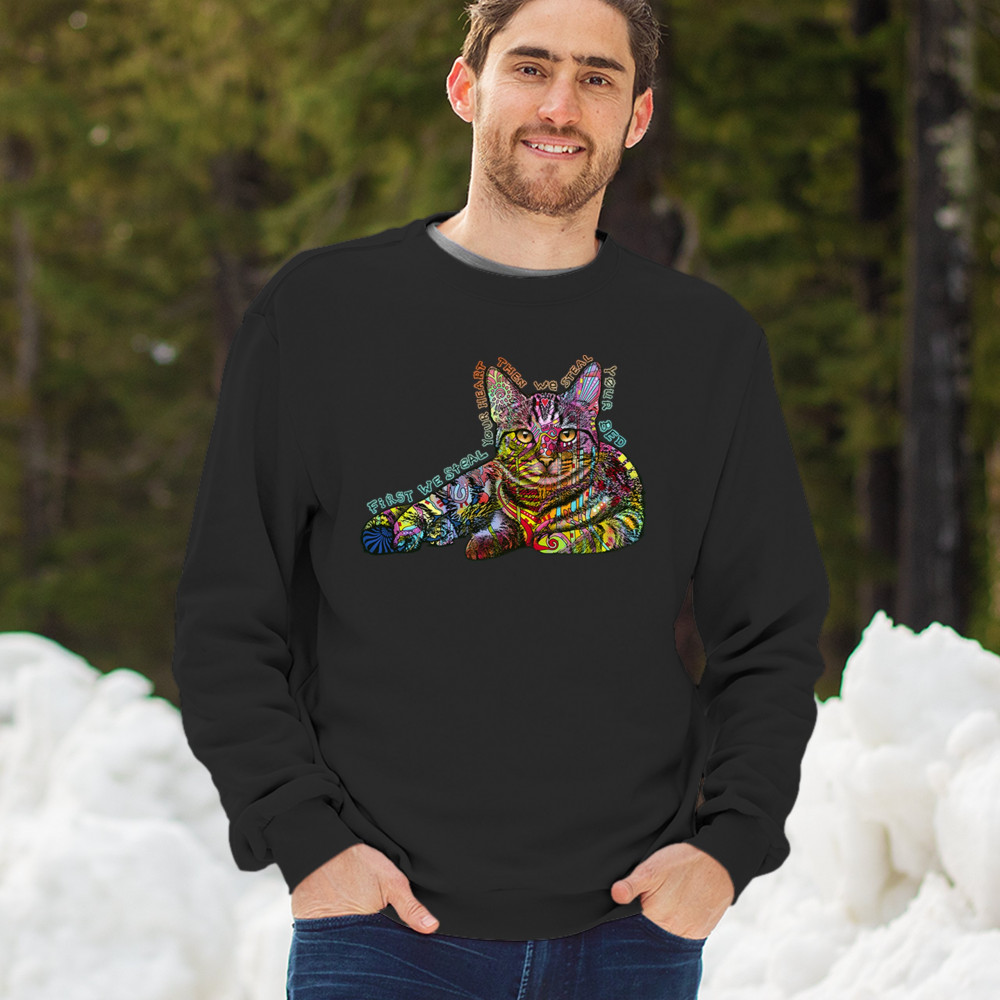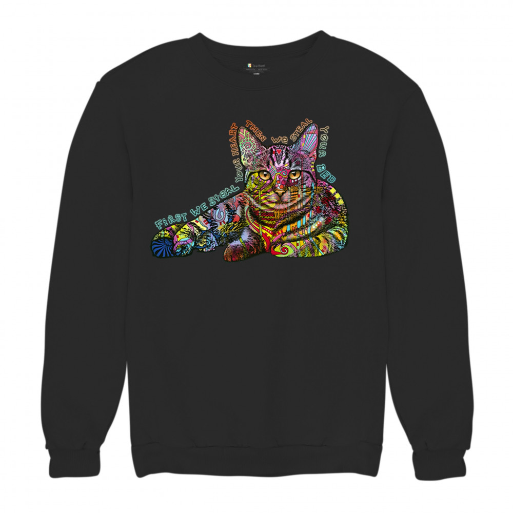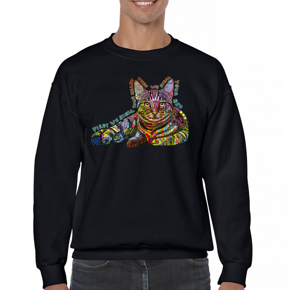 DEAN RUSSO CUTE NEON CAT sweatshirt first we steal your heart kitten crewneck black