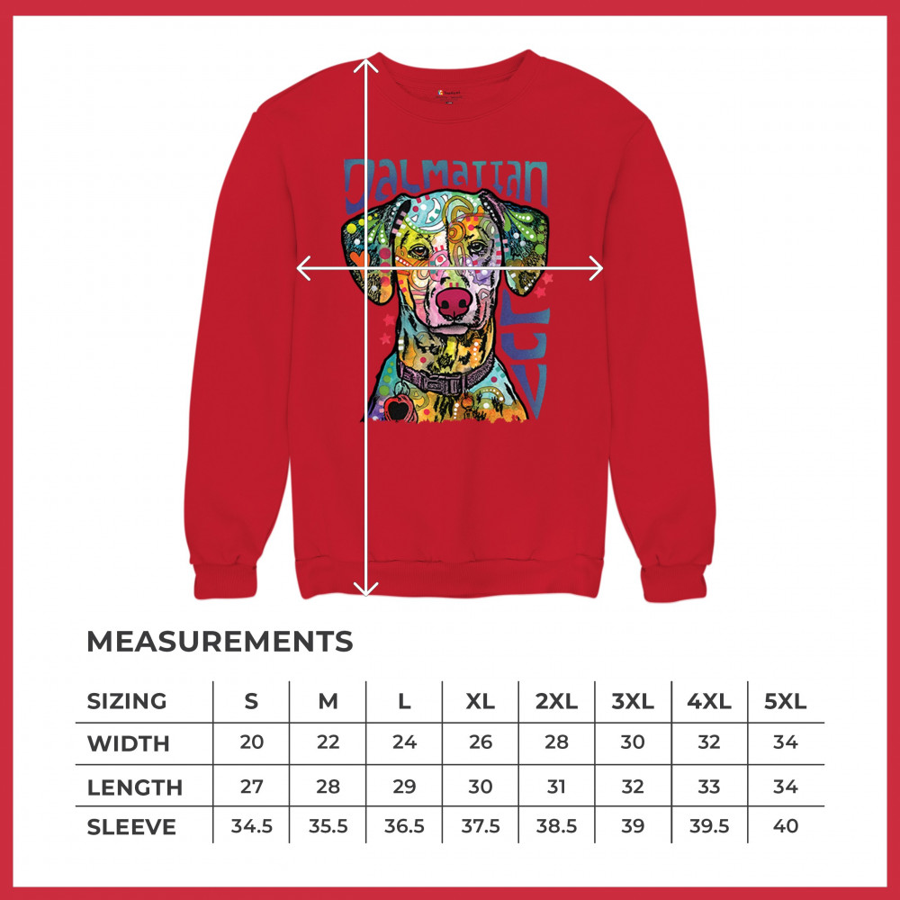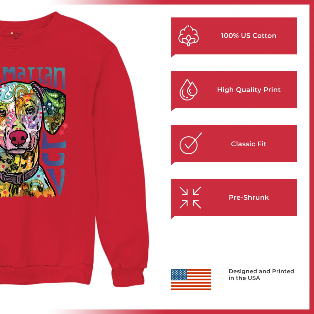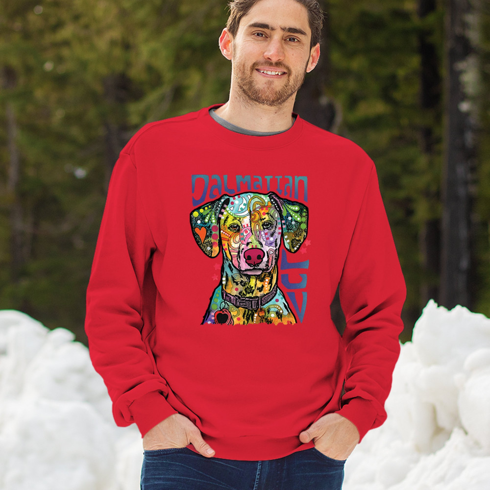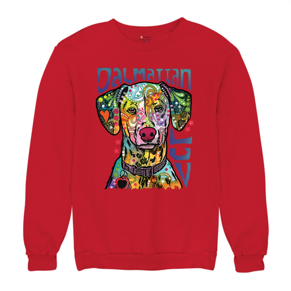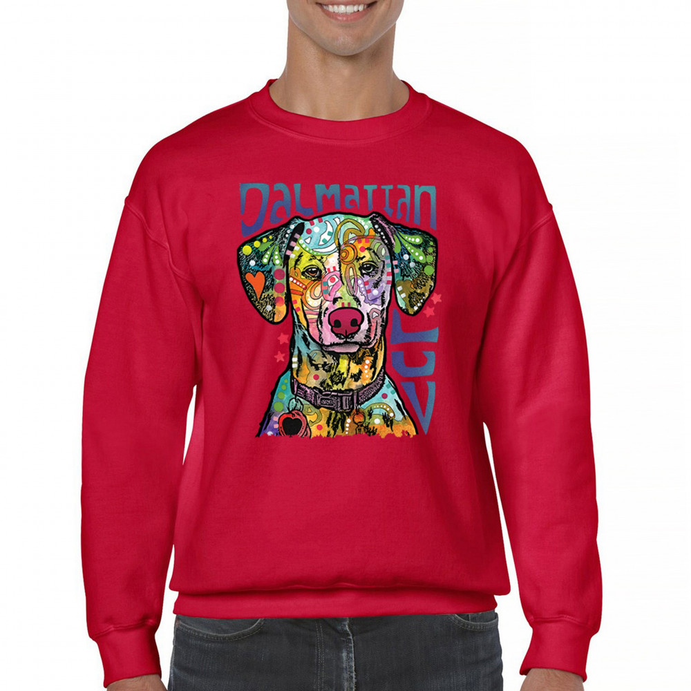 DEAN RUSSO DALMATIAN LUV COLORFUL DOG sweatshirt neon puppy lover crewneck red