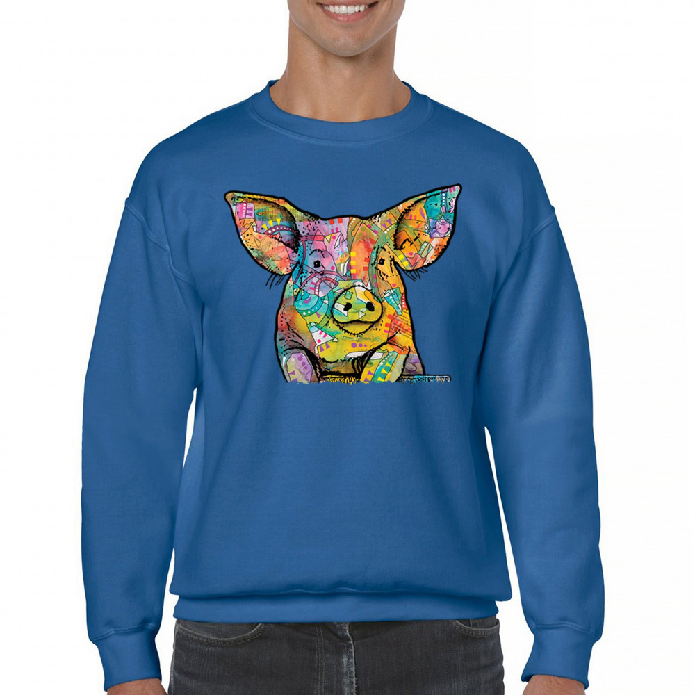 DEAN RUSSO FUNNY CUTE PIG sweatshirt farm piglet lover barn crewneck royal blue