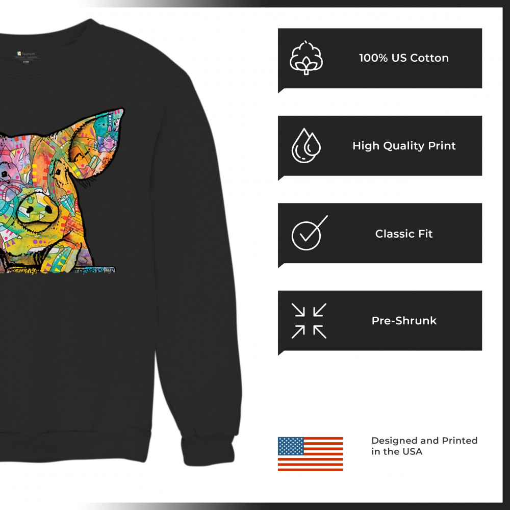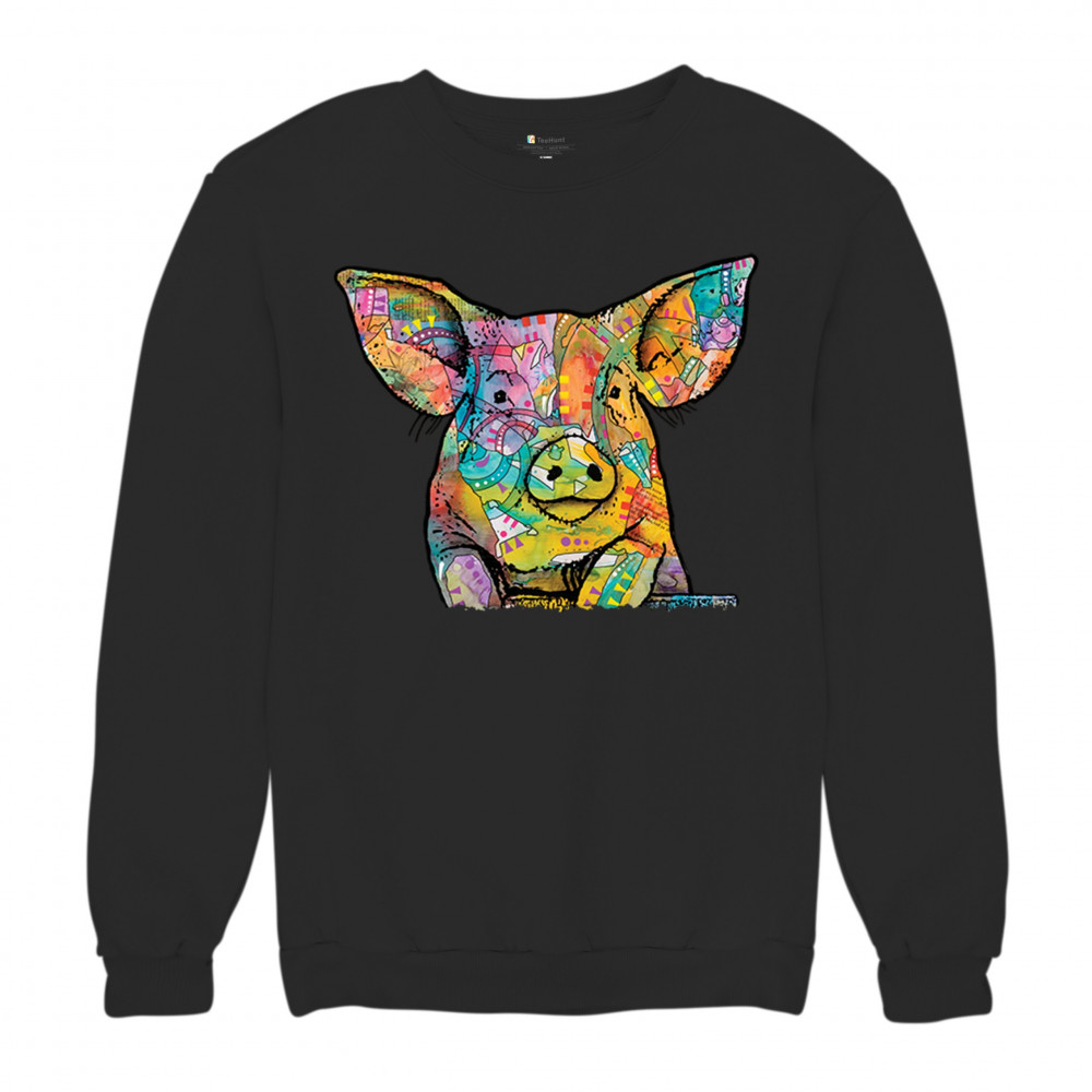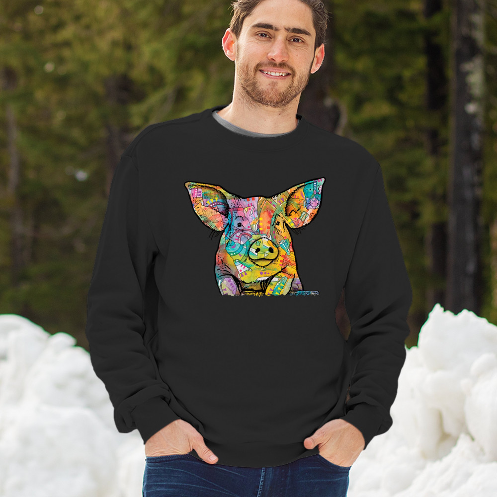 DEAN RUSSO FUNNY CUTE PIG sweatshirt farm piglet lover barn crewneck black