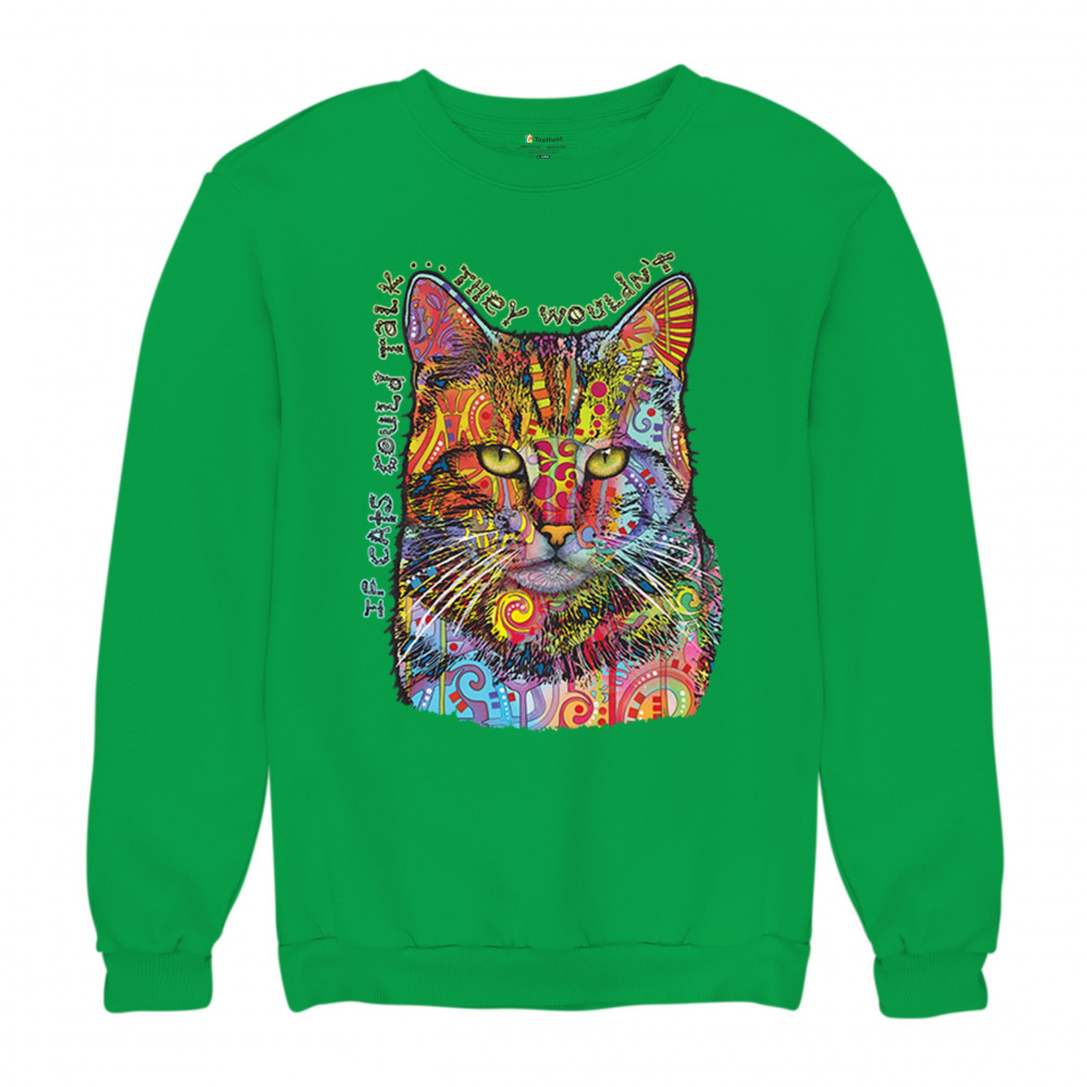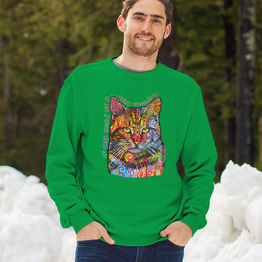 DEAN RUSSO IF CATS COULD TALK THEY WOULDN'T sweatshirt cute cat crewneck green