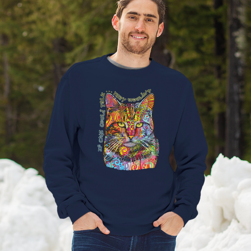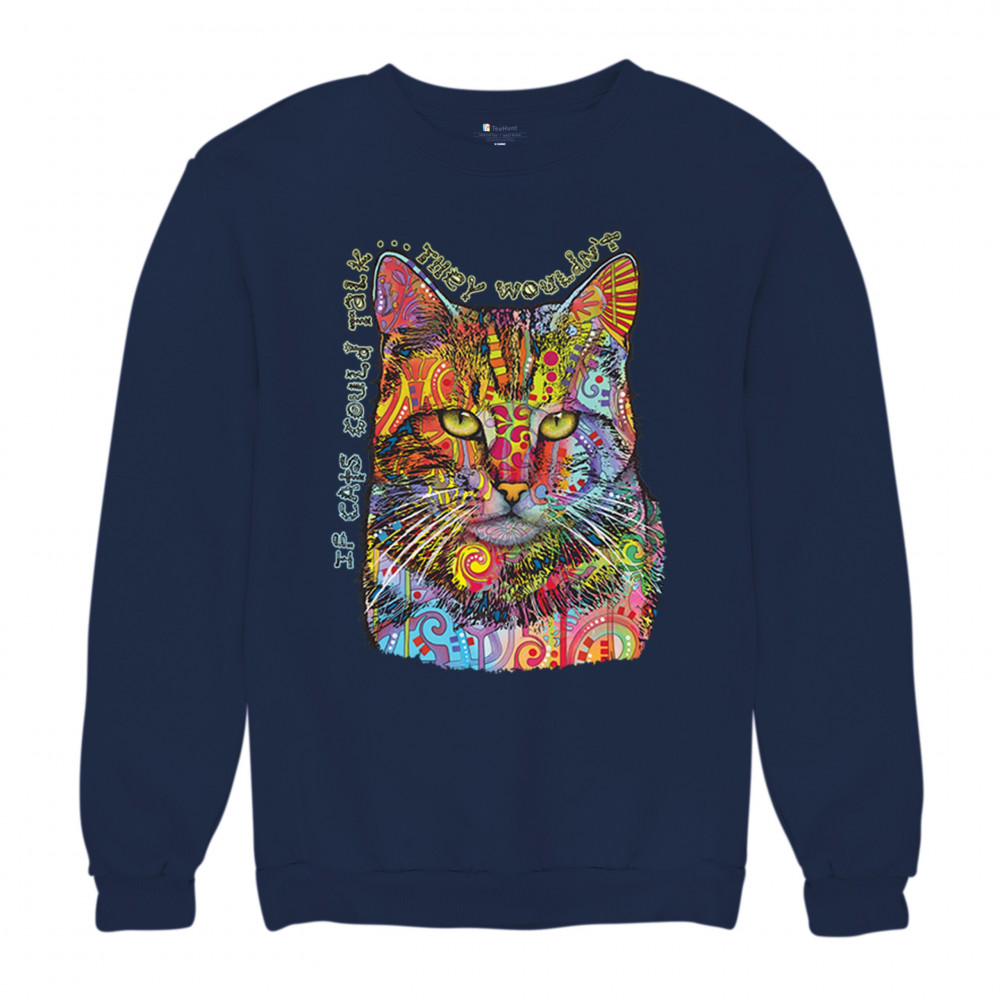 DEAN RUSSO IF CATS COULD TALK THEY WOULDN'T sweatshirt cute cat crewneck navy blue