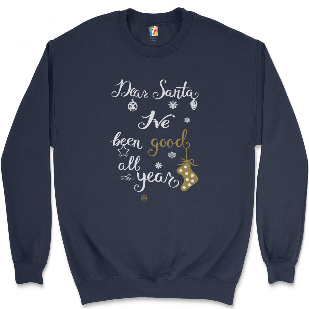 DEAR SANTA I'VE BEEN GOOD ALL YEAR sweatshirt funny christmas xmas crewneck navy blue