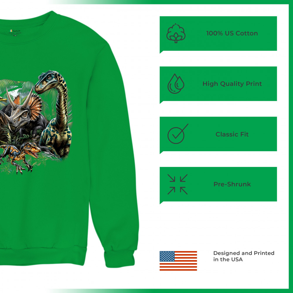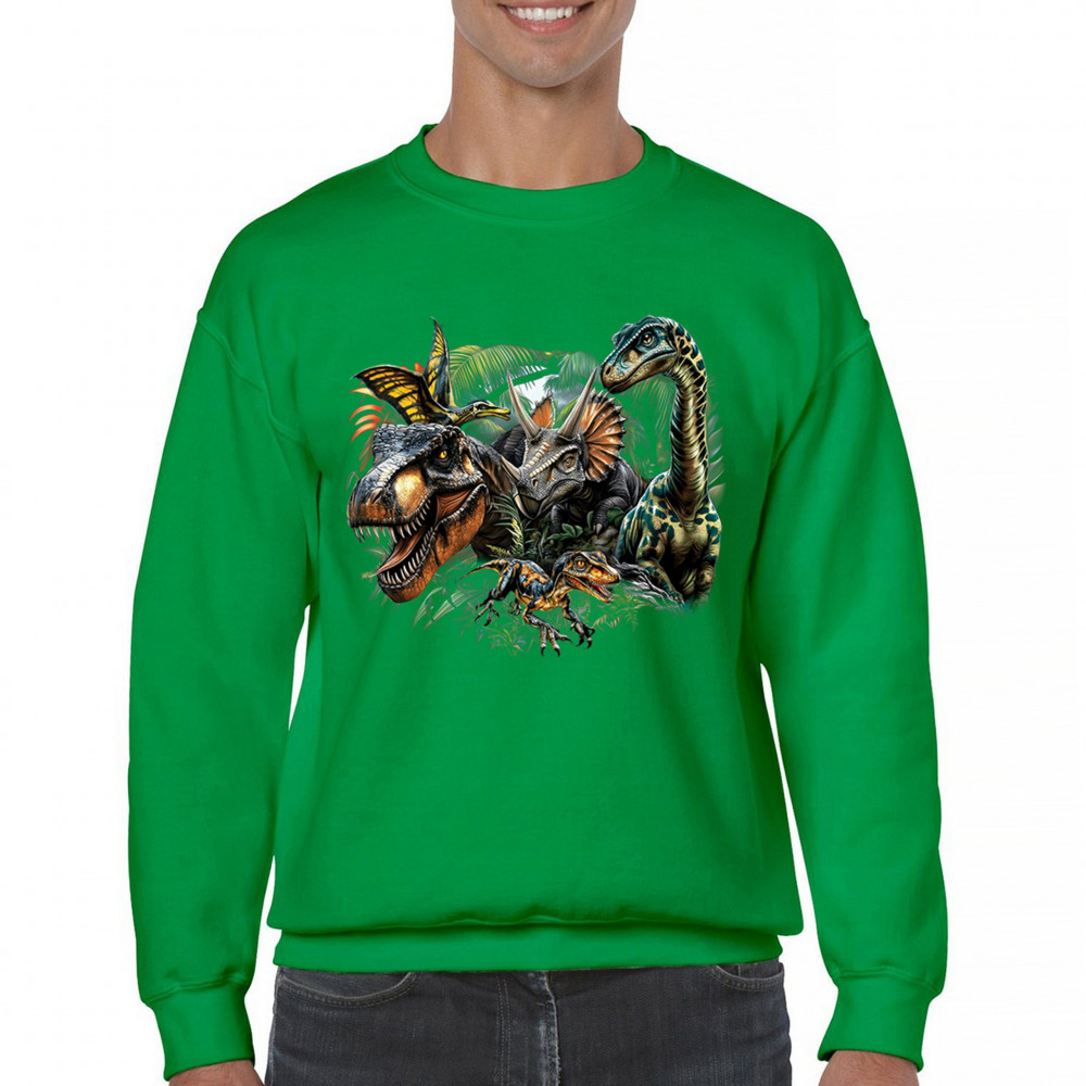 Get prehistoric with this electrifying design featuring a full dino squad in vibrant jungle detail. Includes t rex, triceratops, raptor, brachiosaurus, and pteranodon, all surrounded by tropical foliage. A perfect pick for dinosaur fans, fossil hunters, Jurassic birthday parties, or anyone who loves bold, wild, nature-themed art.