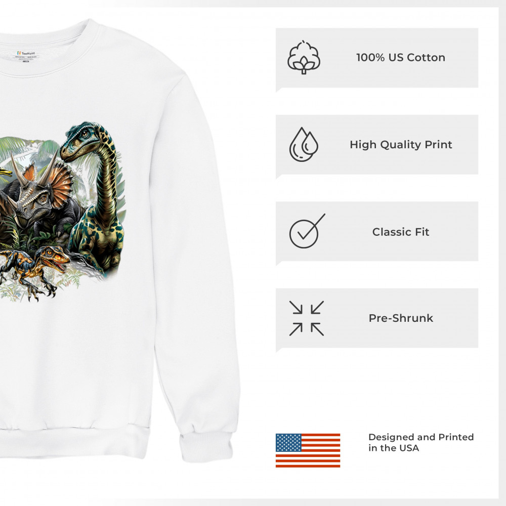 Get prehistoric with this electrifying design featuring a full dino squad in vibrant jungle detail. Includes t rex, triceratops, raptor, brachiosaurus, and pteranodon, all surrounded by tropical foliage. A perfect pick for dinosaur fans, fossil hunters, Jurassic birthday parties, or anyone who loves bold, wild, nature-themed art.