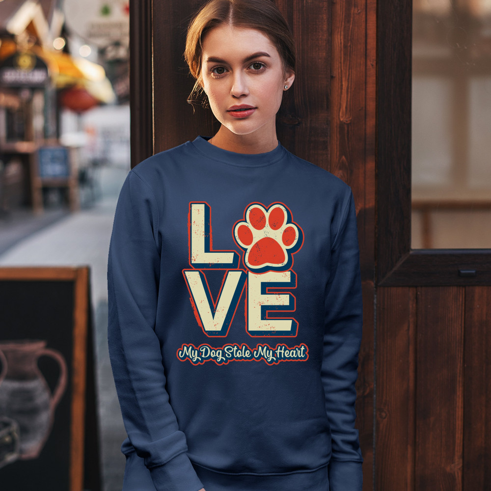 DOG PAW LOVE sweatshirt my dog stole my heart pet owner animal lover crewneck navy blue