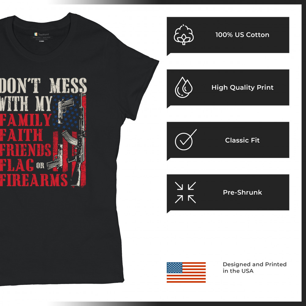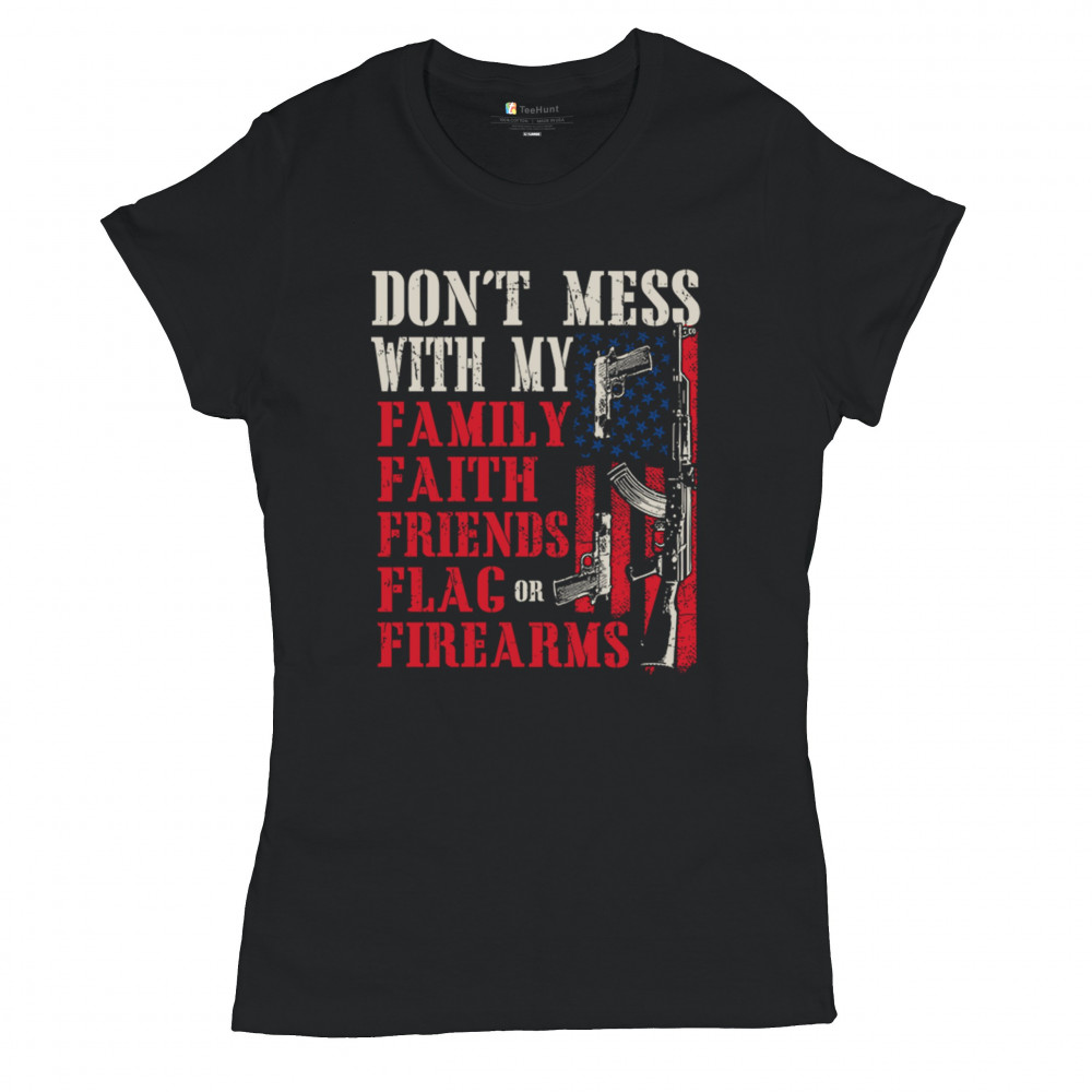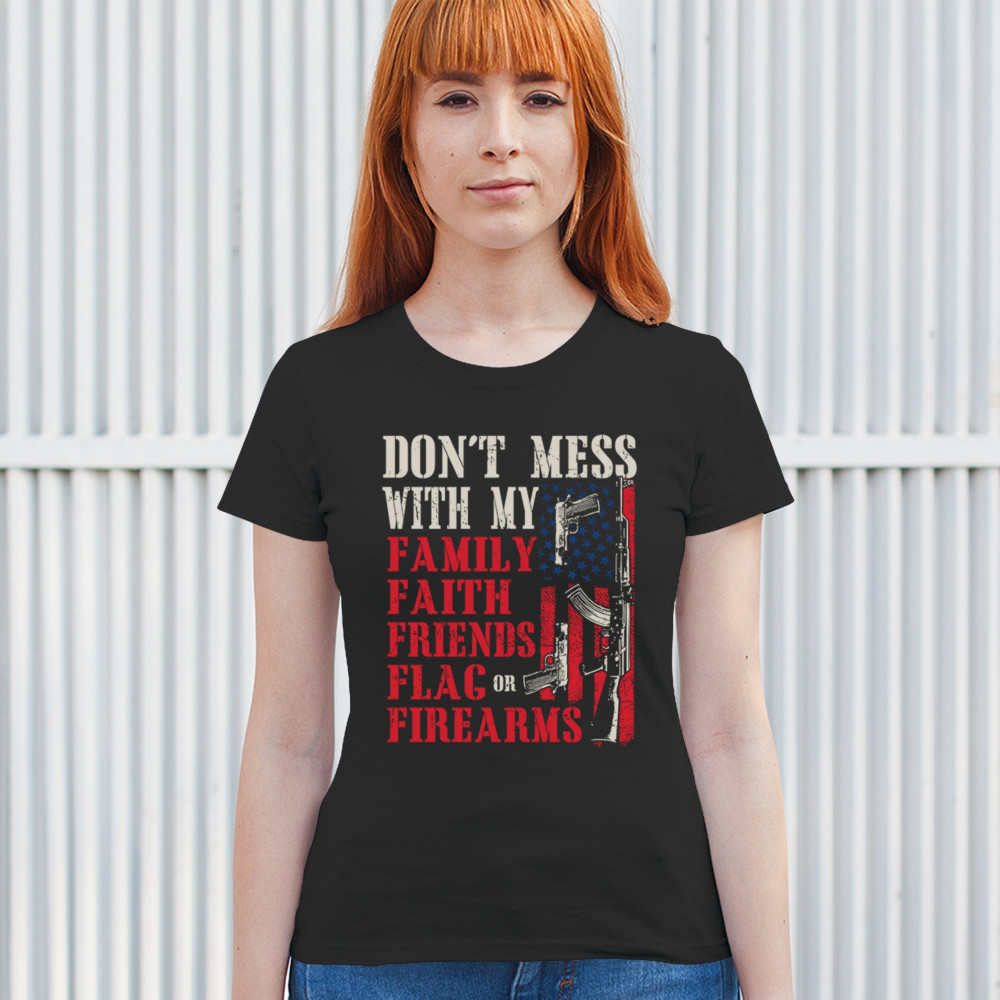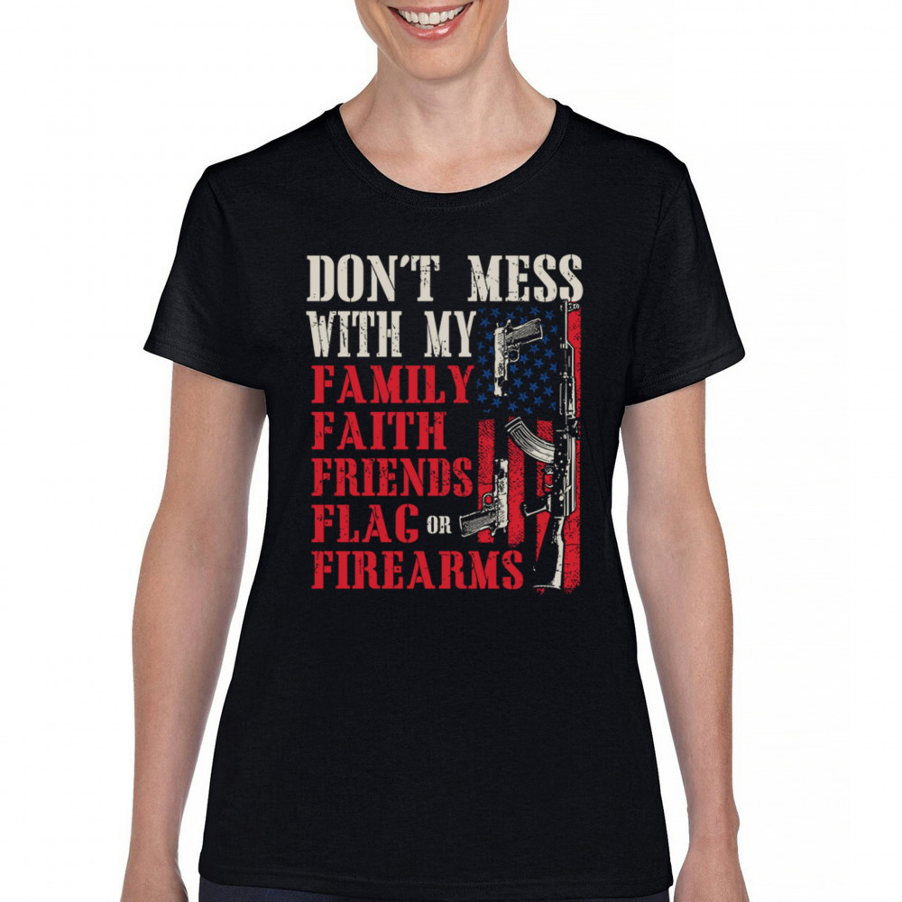 DON’T MESS WITH MY FAMILY t-shirt faith flag friends firearms 2a women's tee black