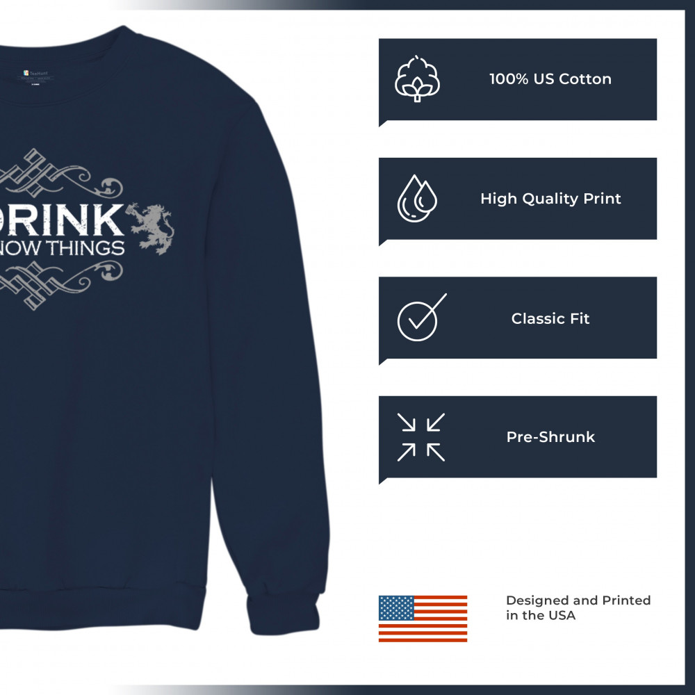 Show off your wit with the “I Drink and I Know Things†design, styled with medieval scrollwork and regal lions. Whether you're holding a pint at the bar, leading trivia night, or binge-watching fantasy series, this bold and funny piece is made for those who love drinking, sarcasm, and clever quotes with timeless flair.