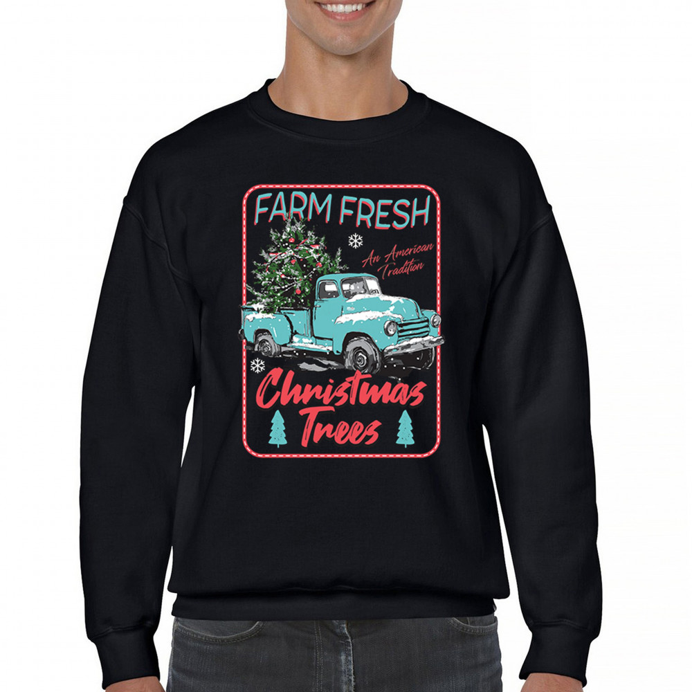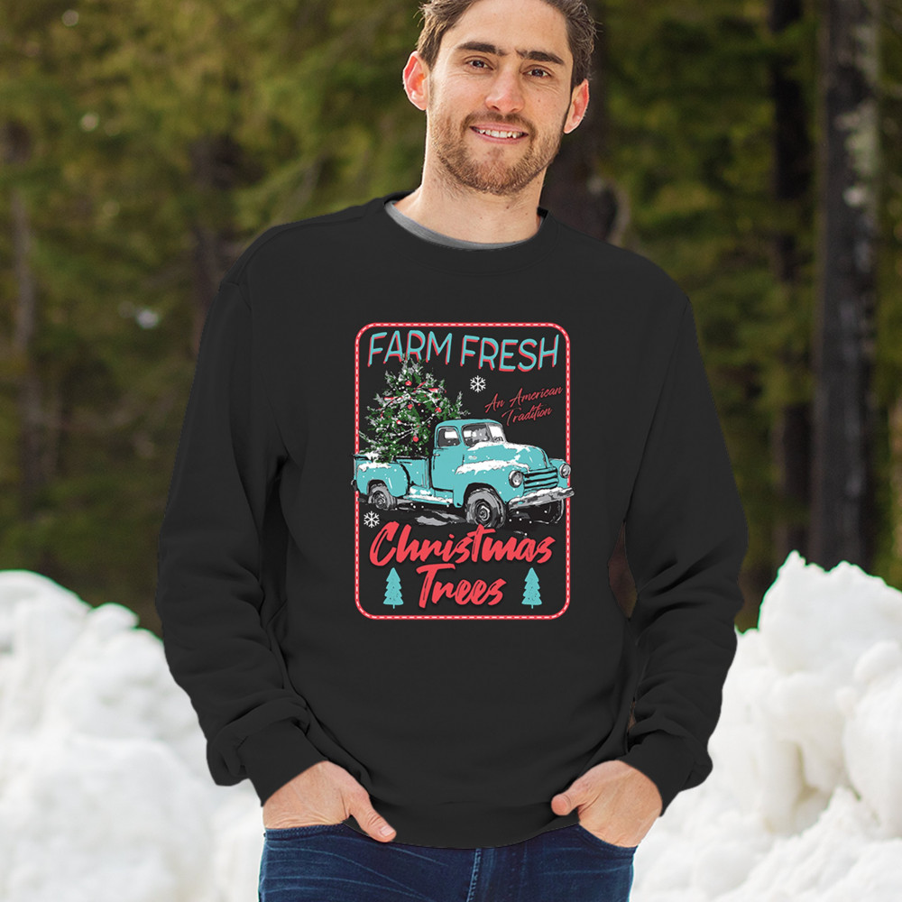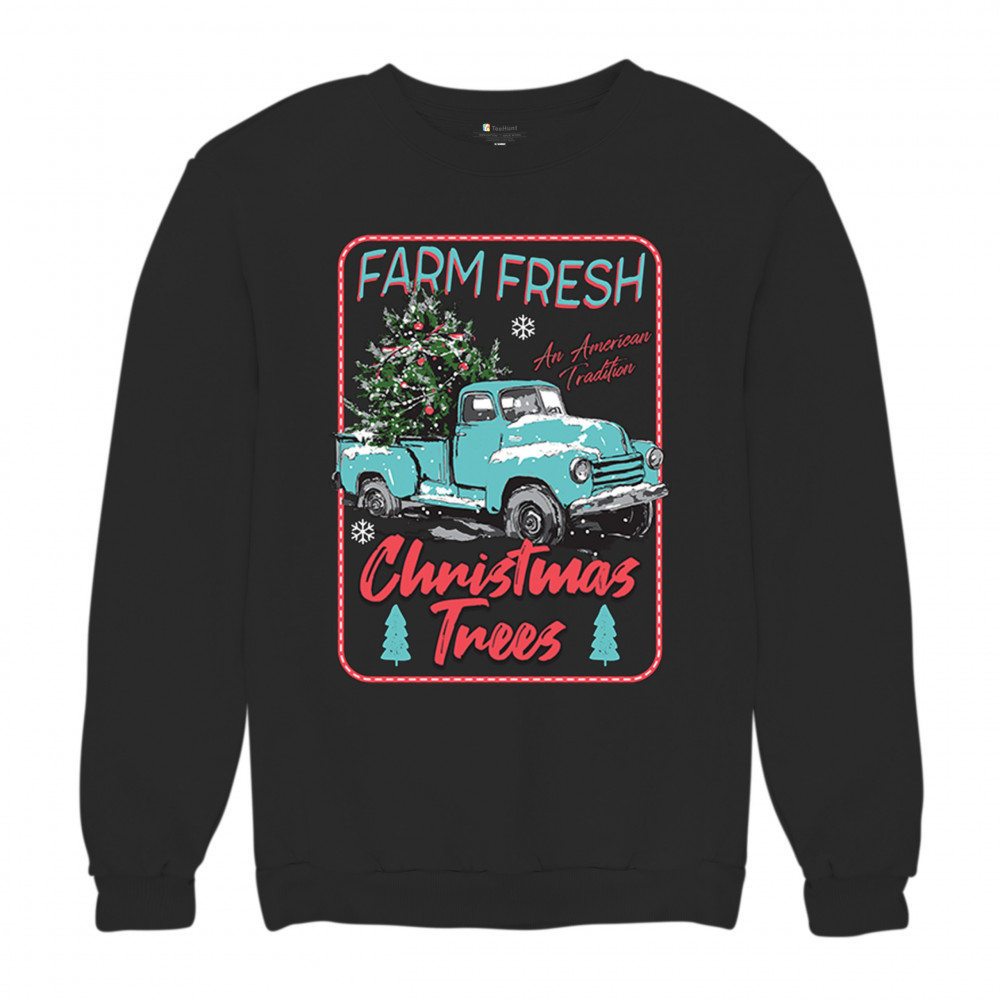 FARM FRESH CHRISTMAS TREES sweatshirt american tradition retro truck crewneck black