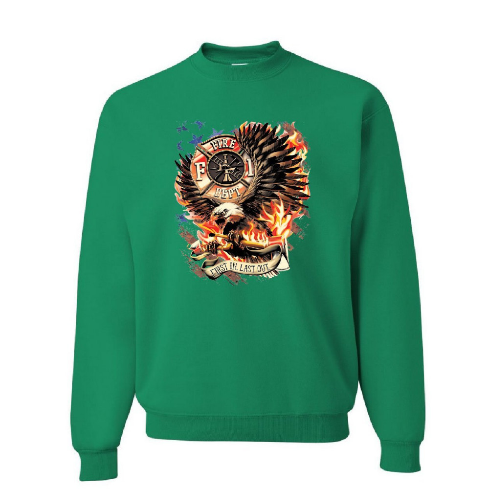 FIREFIGHTER FIRST IN LAST OUT first in last out sweatshirt fire & rescue fd american firefighter sweater green