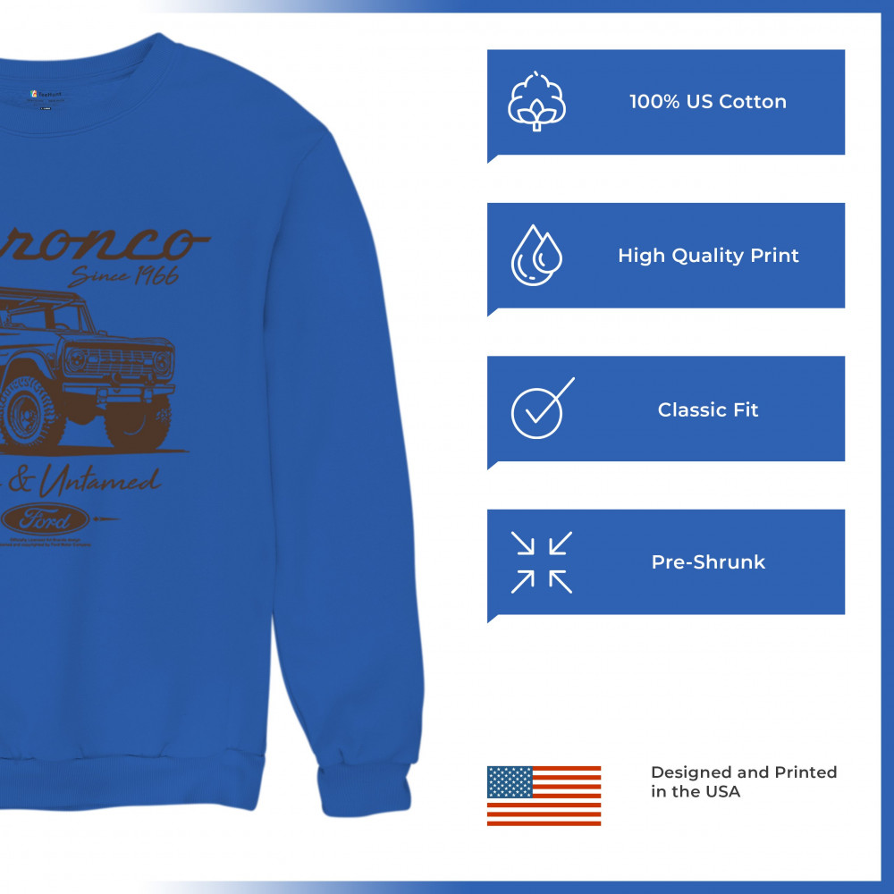 Discover the perfect gift for Ford Bronco enthusiasts with this officially licensed apparel. Highlighting "Bronco Since 1966" and "Wild and Untamed," the design captures the rugged charm of this iconic off-road SUV. Ideal for classic car lovers, outdoor explorers, and 4x4 adventurers, this vintage collectible represents the adventure-ready spirit of the Bronco.
