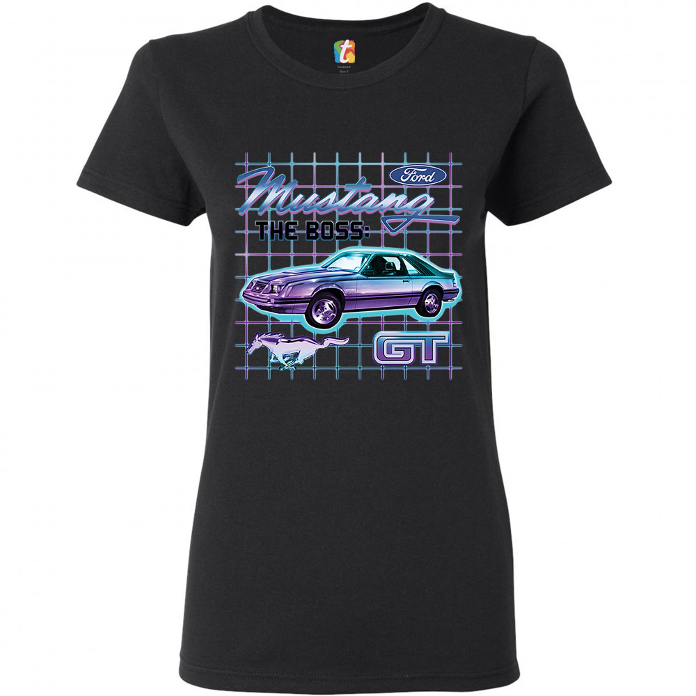 FORD MUSTANG GT THE BOSS t-shirt vintage neon car retro licensed women's tee black