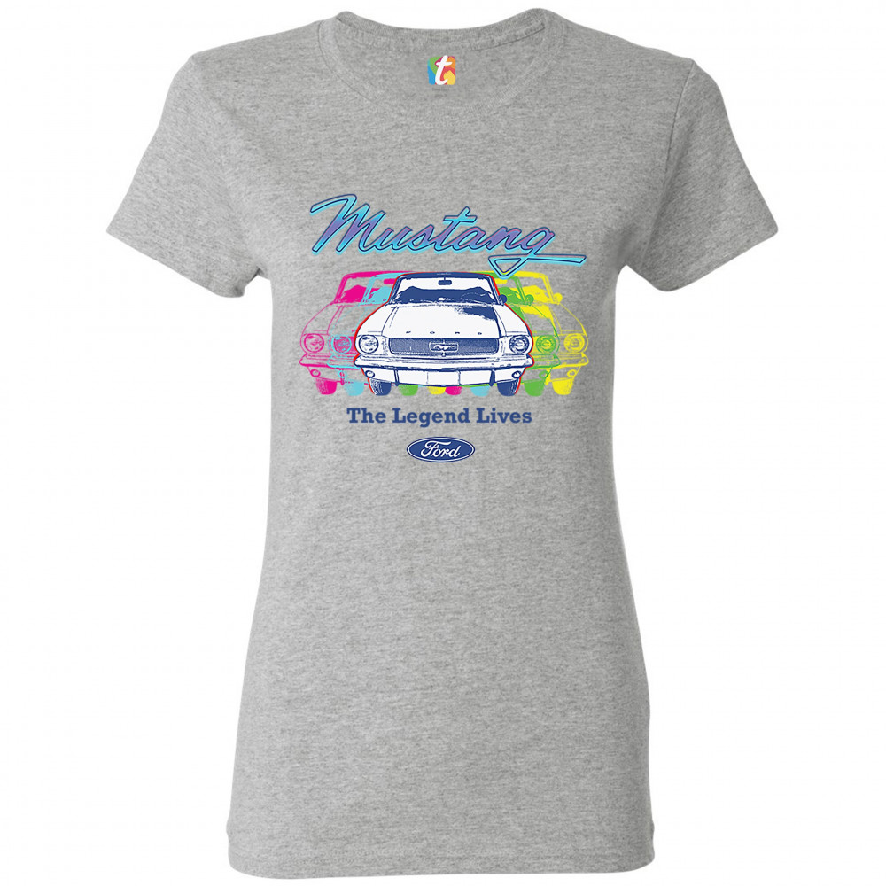 FORD MUSTANG THE LEGEND LIVES t-shirt american classic licensed women's tee gray