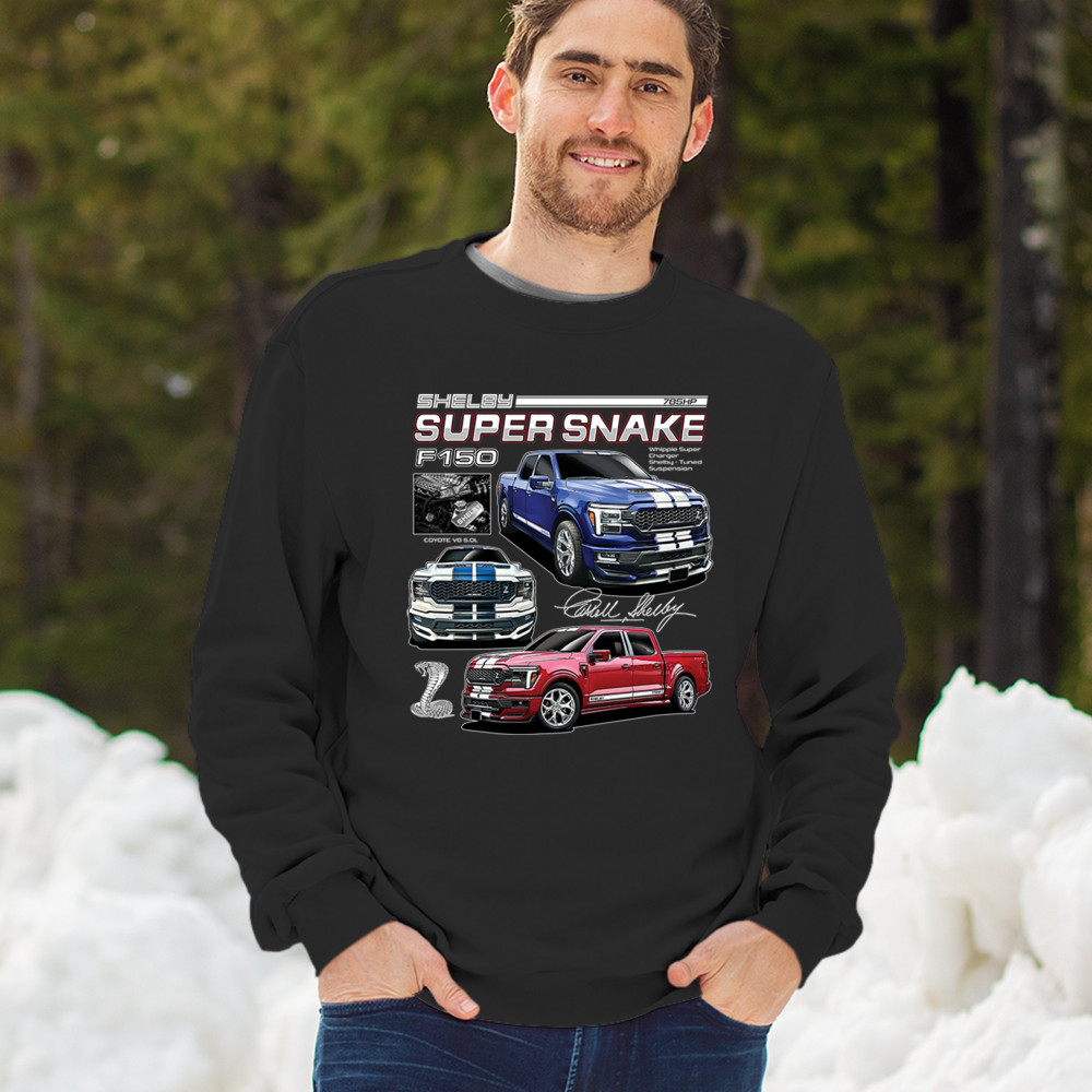 Ford Shelby Super Snake F-150 design featuring 785HP supercharged V8, Shelby pickup heritage, Shelby American truck power, and off-road muscle.