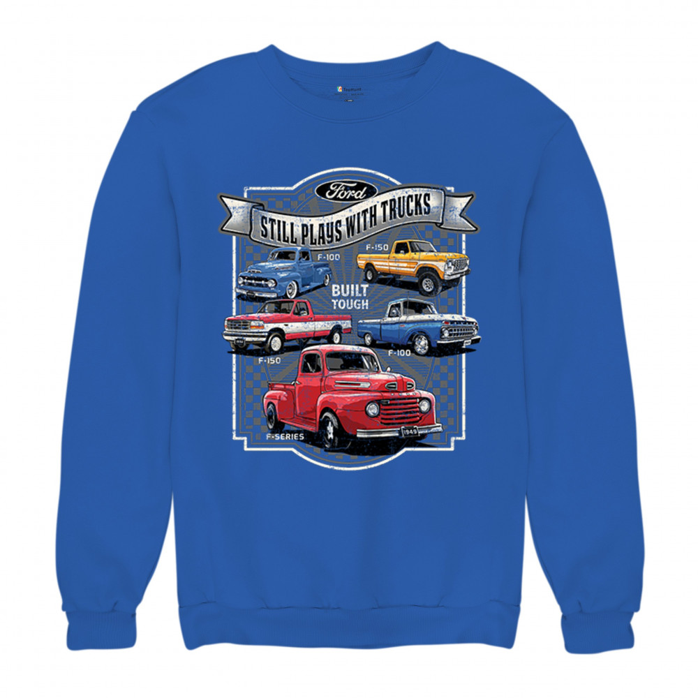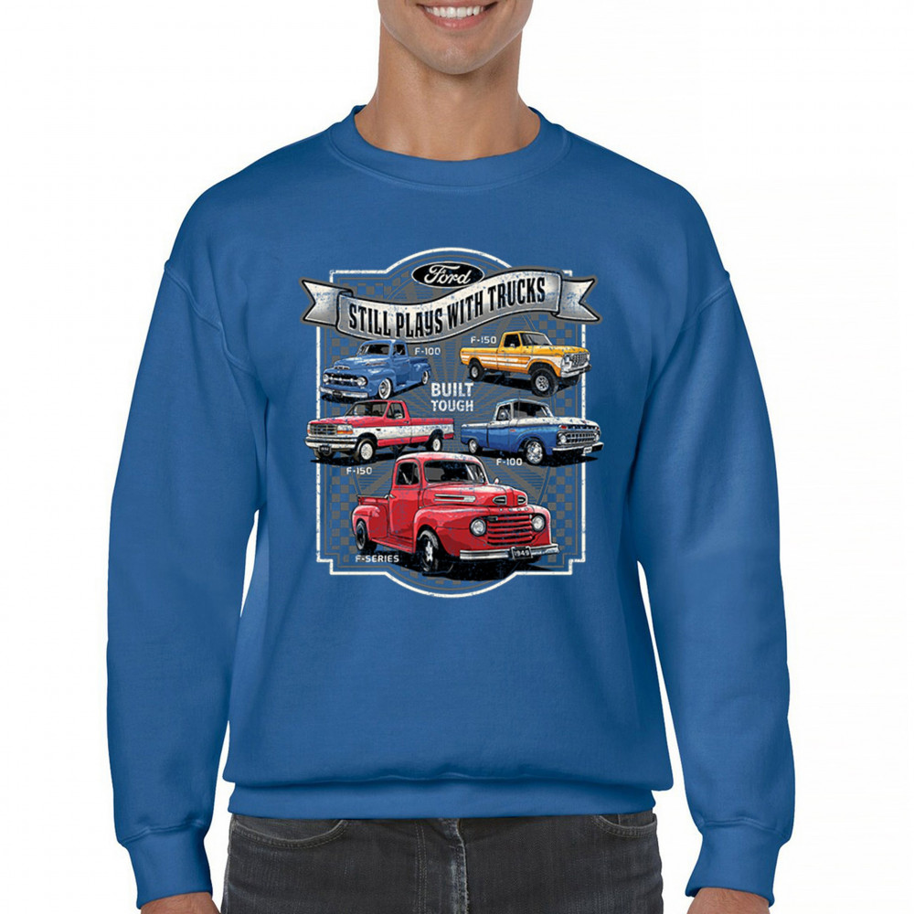 Features classic Ford F-Series trucks from 1949 to F-150. Great for vintage truck fans, garage wear, car shows, and collectors who love pickups.