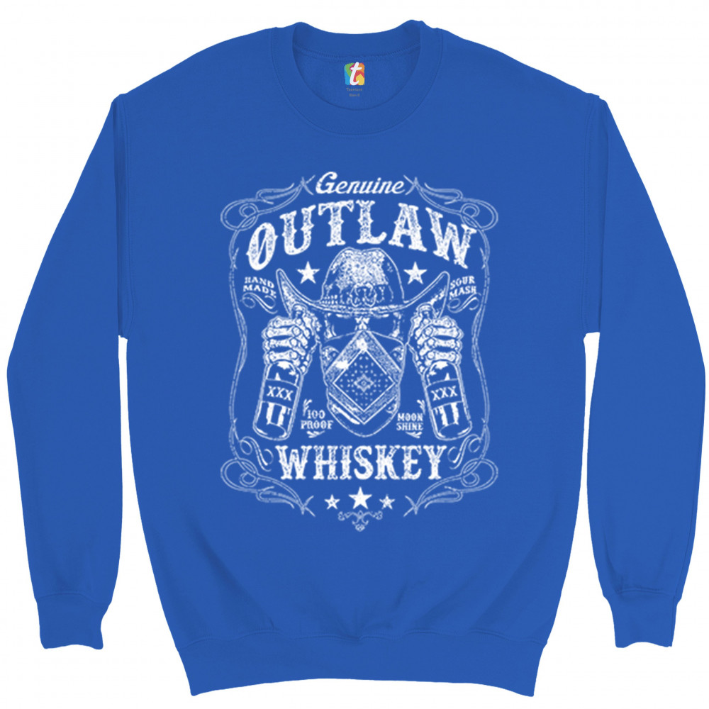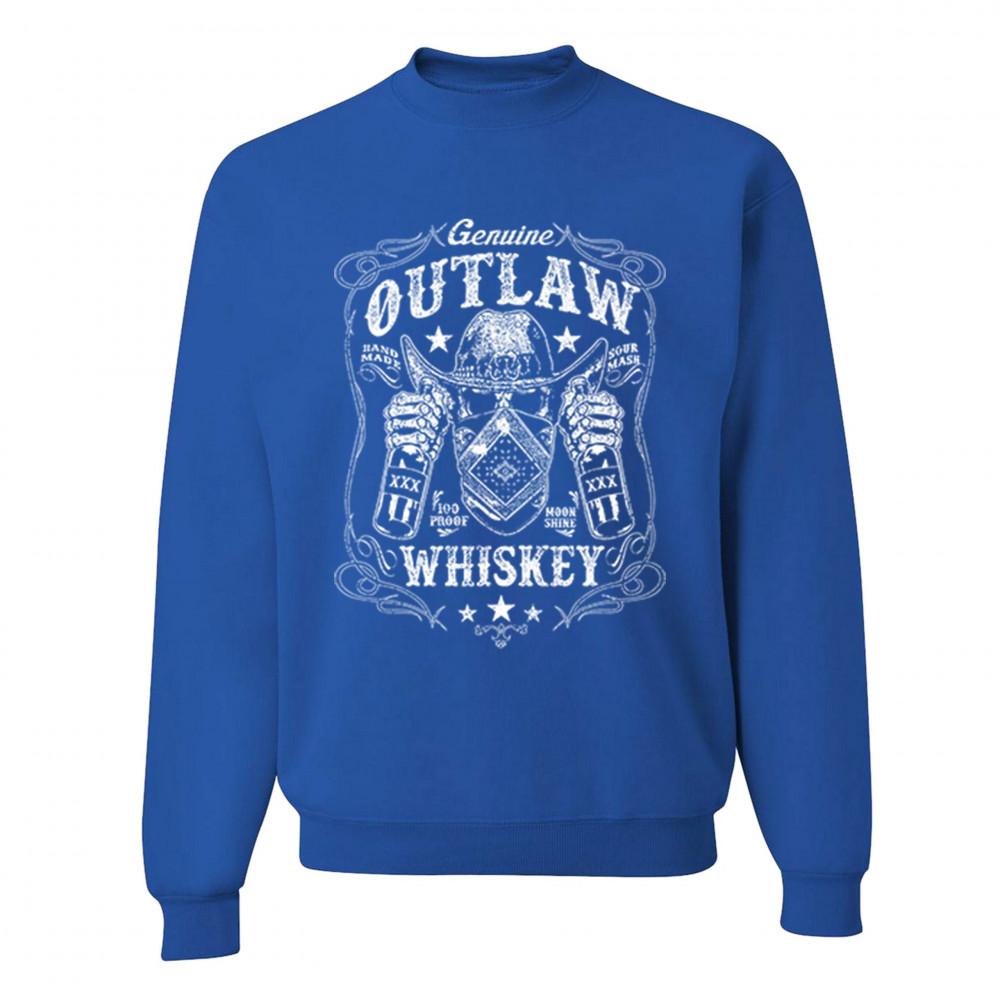 GENUINE OUTLAW WHISKEY sweatshirt xxx sour mash moonshine drinking crewneck royal blue