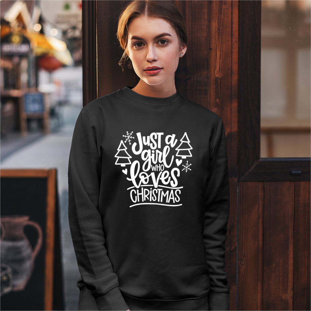 This fun Christmas graphic blends bold lettering with simple tree, heart, and snowflake accents to celebrate every girl who loves the holiday season. Ideal for winter lovers, festive décor fans, cozy-season aesthetics, Christmas party outfits, and anyone who adores spreading cheerful holiday spirit all December long.