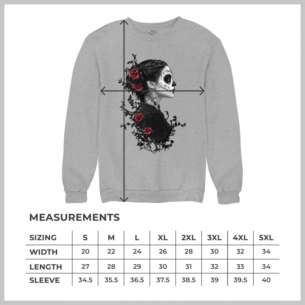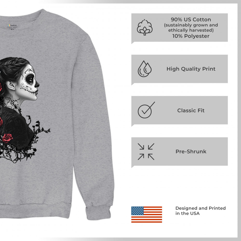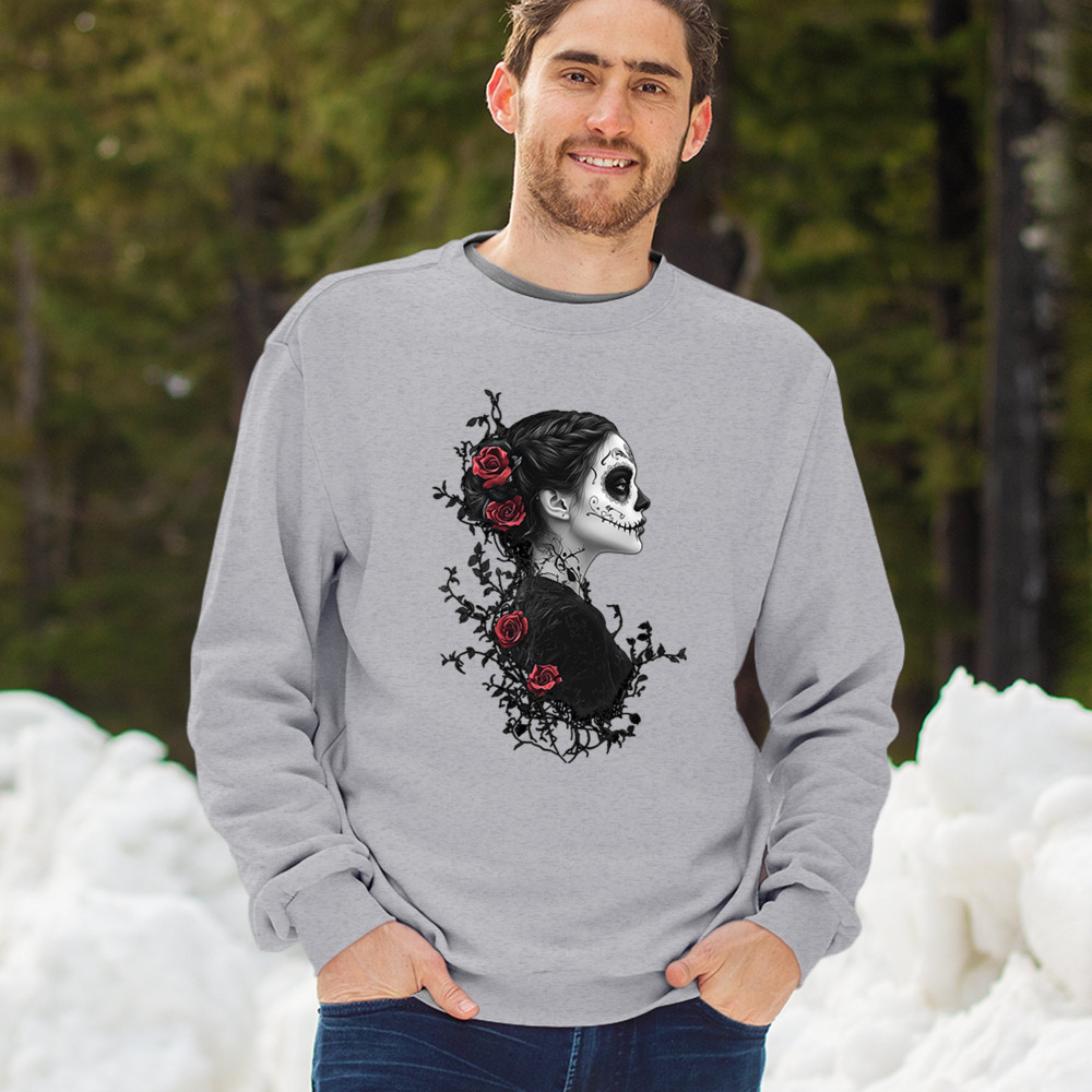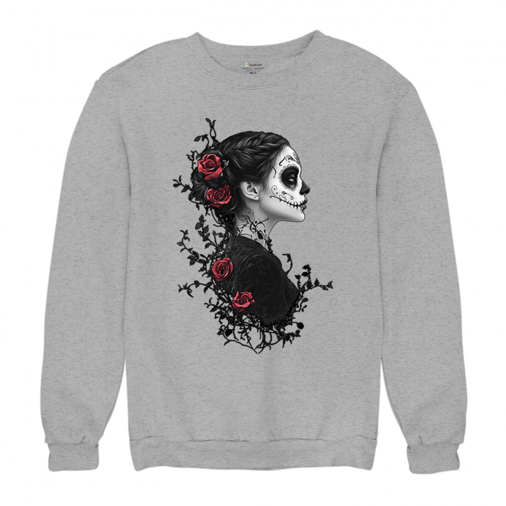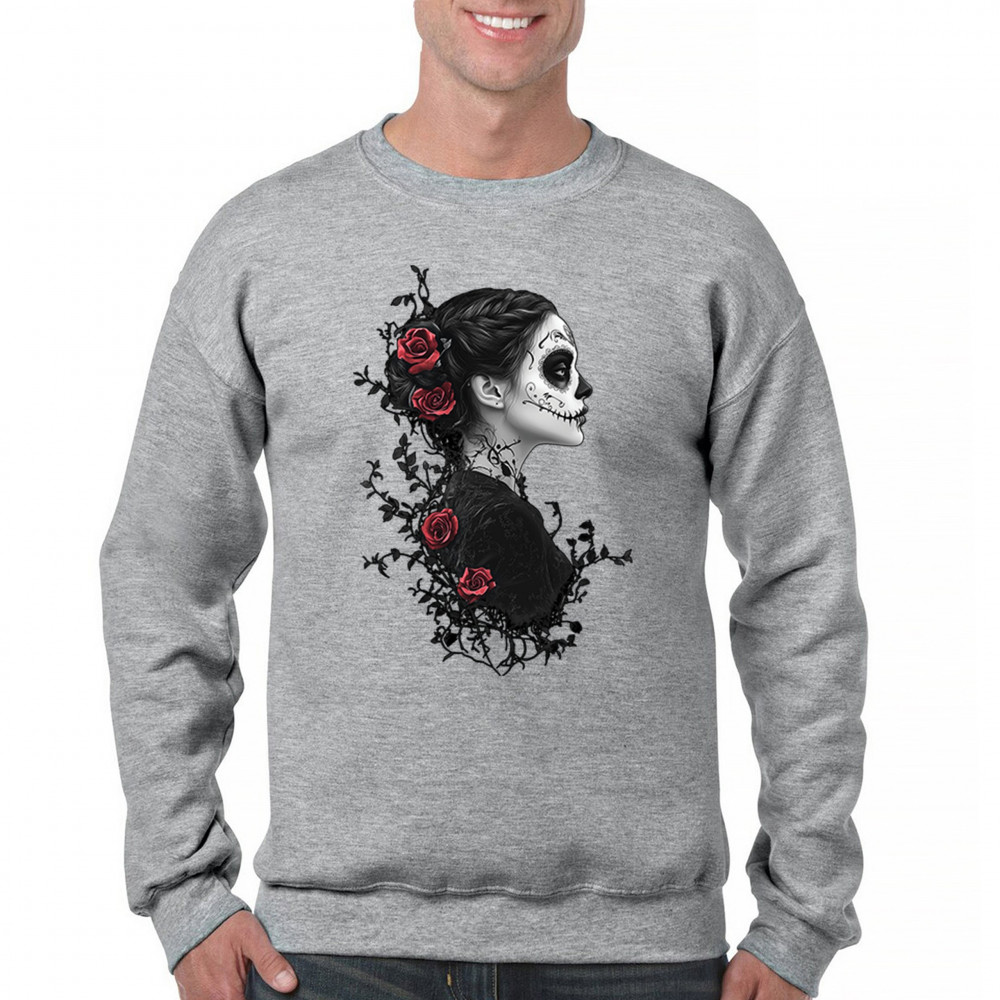 GOTHIC SUGAR SKULL ROSES sweatshirt day of dead dark elegance skeleton crewneck gray