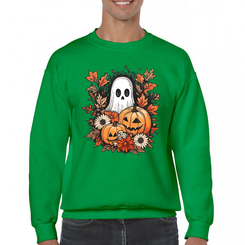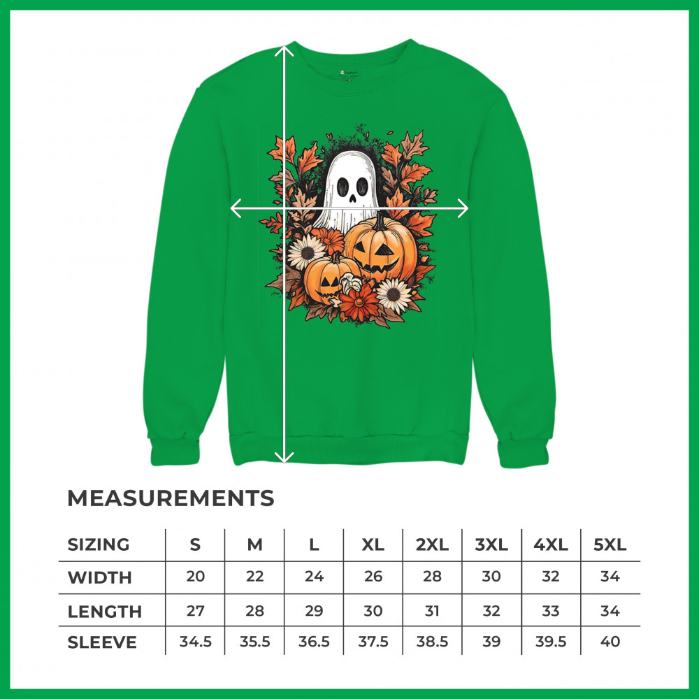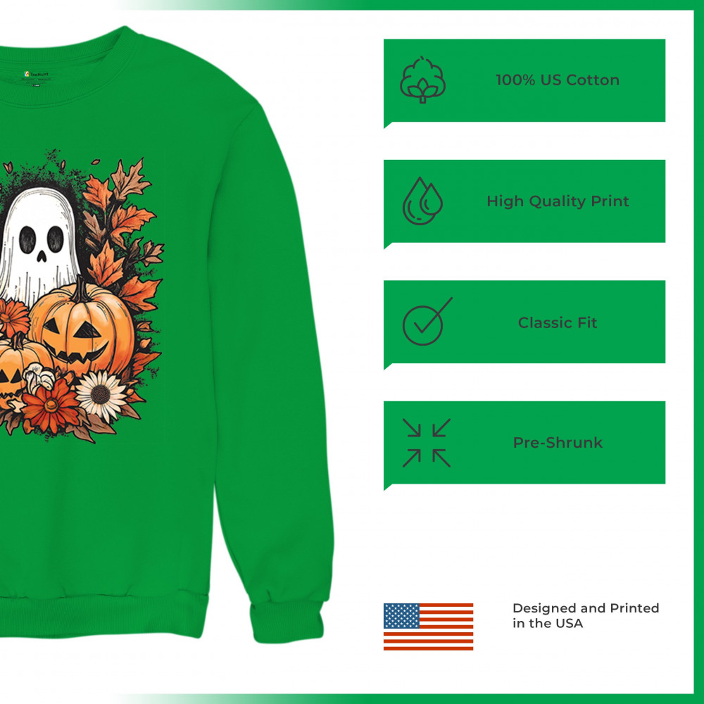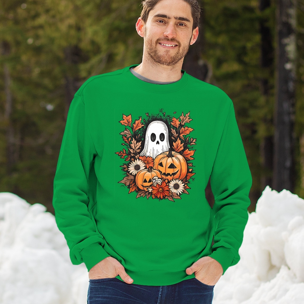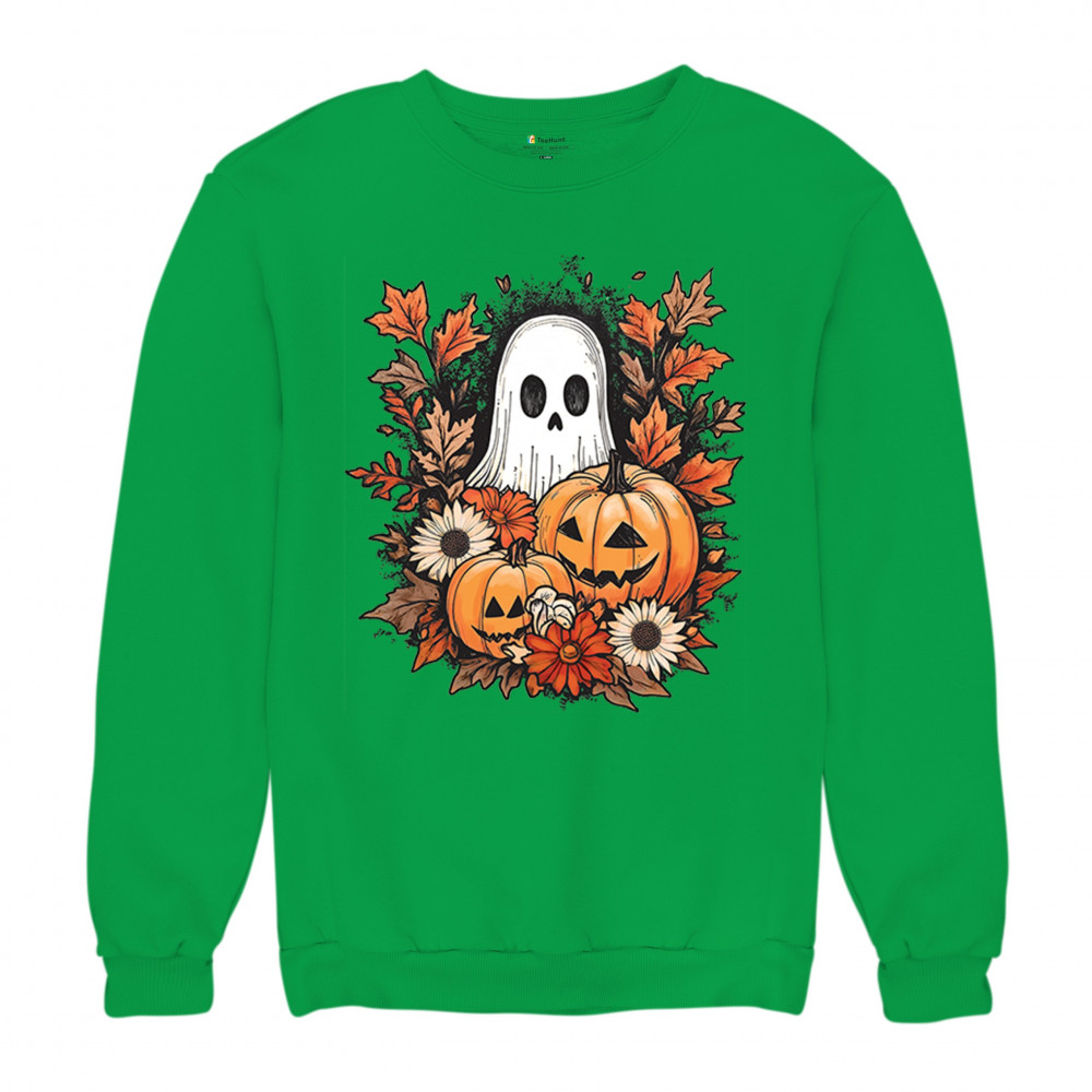 Celebrate the arrival of fall with this delightful design featuring pumpkins, autumn leaves, flowers, and a cute ghost. It's the perfect addition to your Halloween and autumn-themed wardrobe, or even as decor to welcome the fall spirit into your home. The combination of spooky and cozy elements creates a festive yet warm vibe, ideal for Halloween parties, pumpkin patch trips, or just enjoying the beautiful fall season.