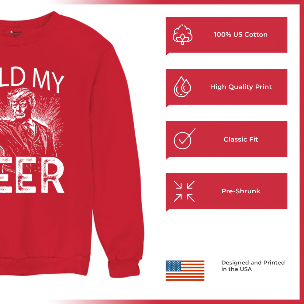 Bold and humorous "Hold My Beer" design for Trump supporters! Celebrate America First, the Red Wave, and Donald J. Trump with this patriotic graphic.