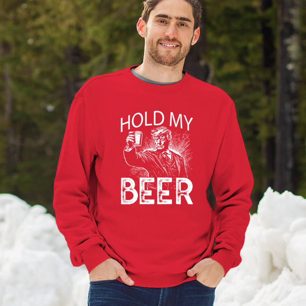 Celebrate the boldness of America First with the "Hold My Beer" design. A tribute to Trump supporters, conservatives, and proud patriots, this graphic humorously encapsulates the resilience and pride of the Red Wave movement. Perfect for rallies, casual gatherings, and those who proudly stand with Donald J. Trump, the 47th President, in the fight for freedom and the people's mandate.