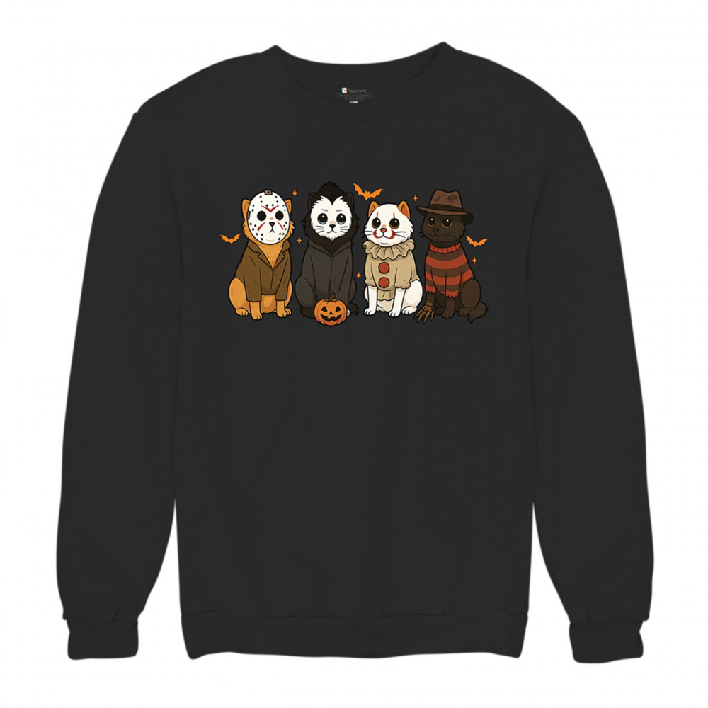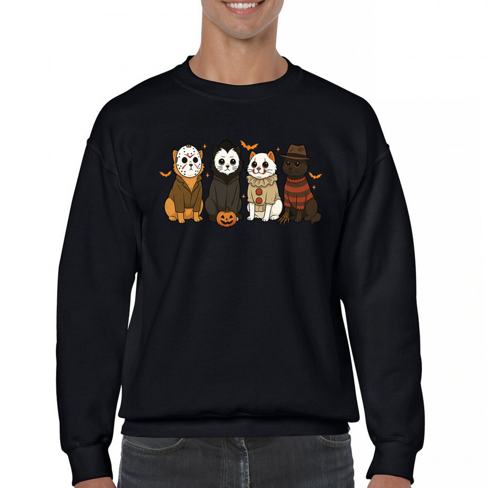 HORROR CATS crewneck sweatshirt trick or treat halloween spooky pumpkin head black