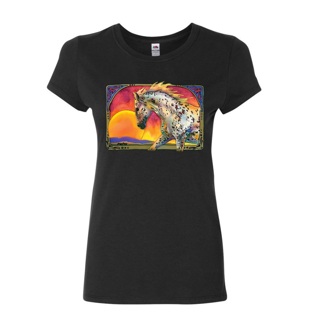 HORSE PRANCING IN SUNSET women's t-shirt animal wildlife mare stallion shirt black