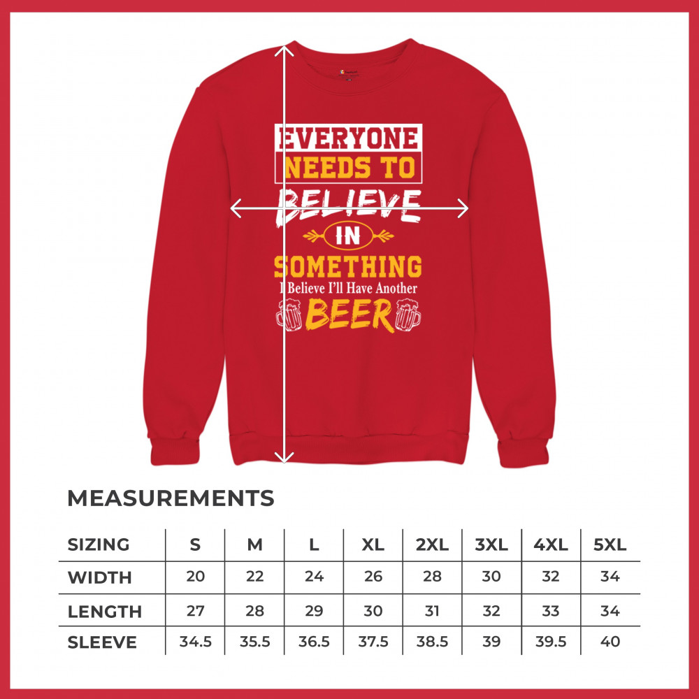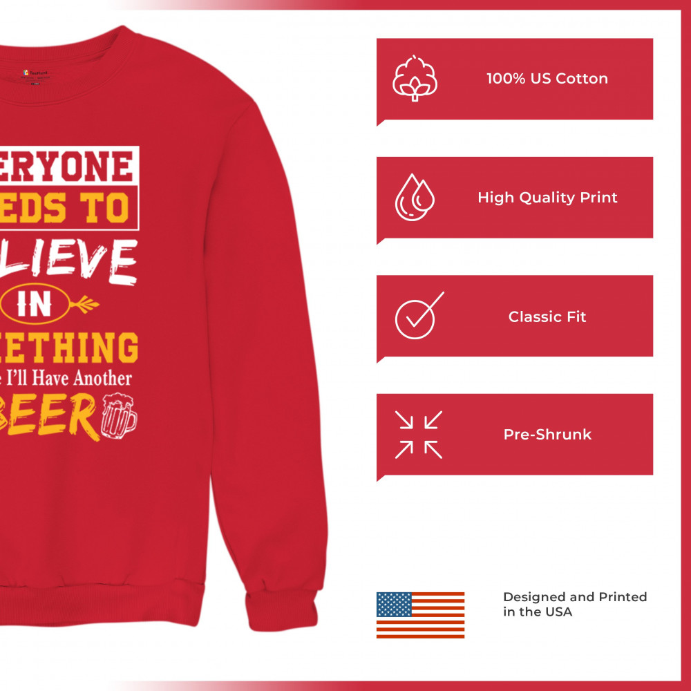 Add some humor to your wardrobe with our "Everyone Needs to Believe in Something, I Believe I'll Have Another Beer" design. Featuring a witty slogan and beer-themed graphics, this design is perfect for casual outings, beer festivals, and social gatherings. Ideal for beer lovers and anyone who enjoys a good laugh, it makes a fantastic gift for friends and family. Celebrate your love for beer and good times with this fun and playful design!